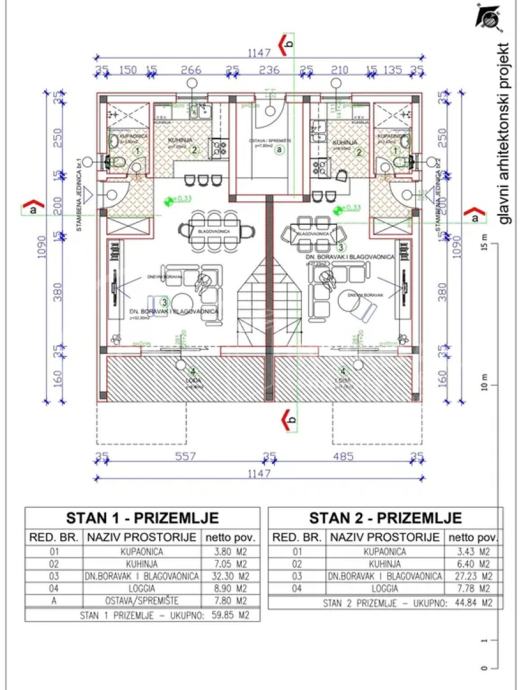 Prizemlje površine 45 m2 + 1 kat. površine 42 m2