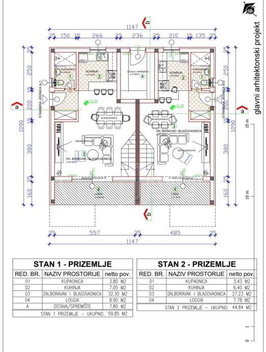 Prizemlje površine 45 m2 + 1 kat. površine 42 m2
