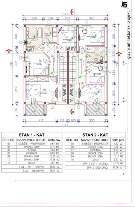 Ukupna površina kuće/stana je 86 m2, raspoređeno na dvije etaže,