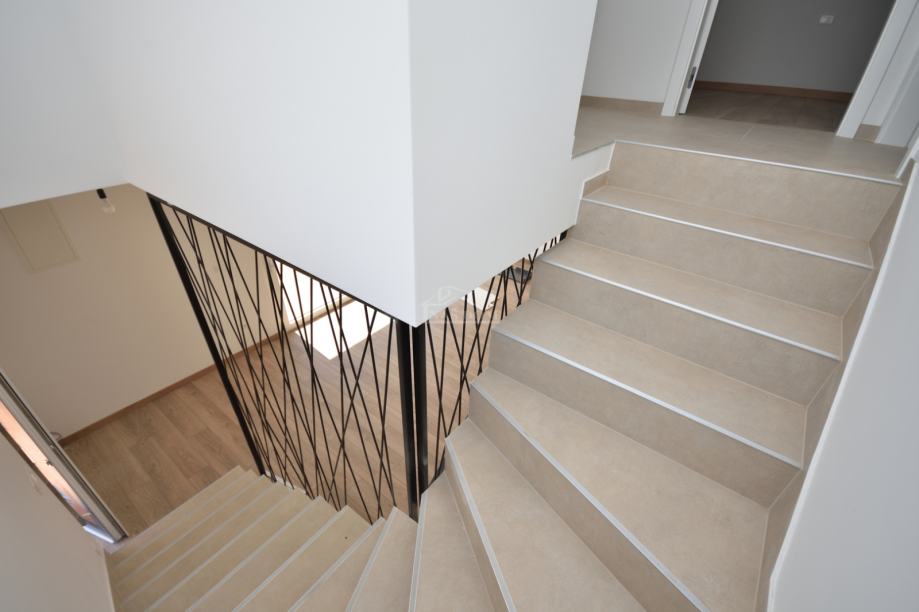 Prvi kat se sastoji od: tri spavaće sobe, hodnik i kupaonica. Kući pripadaju dva parkirna mjesta i vrt površine 11,59m2.
