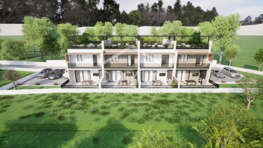 U Vodicama, na jednoj od najpoželjnijih i mirnijih lokacija, smješten je ekskluzivan kompleks modernih kuća u nizu s ukupno četiri stambene jedinice. Projekt je osmišljen kao spoj suvremene arhitekture, privatnosti i mediteranskog načina života, gdje svaka jedinica pruža osjećaj zasebnosti i komfora.