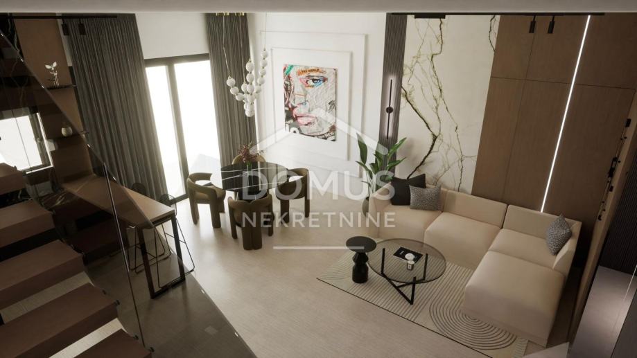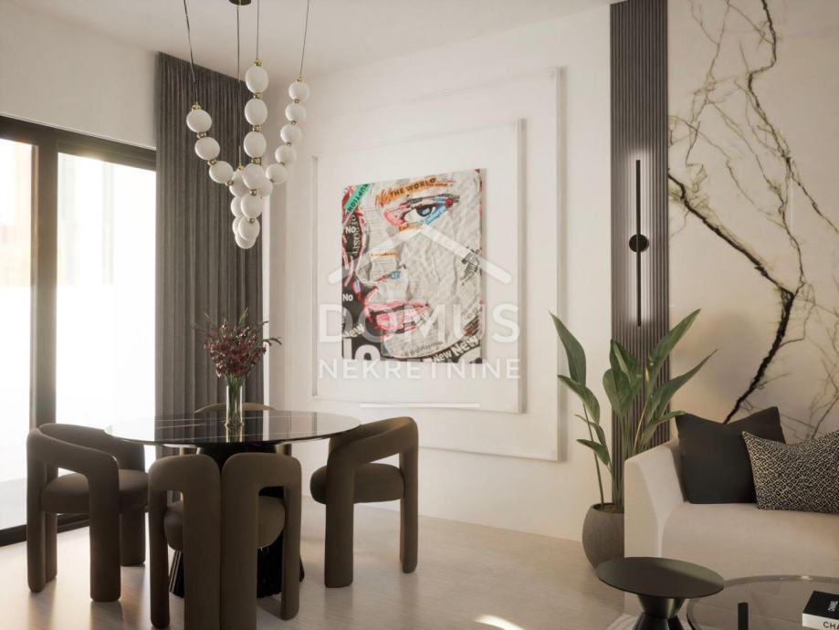 U ponudi je vila oznake 3, raspoređena na više etaža: podrum, prizemlje, kat i krovnu terasu. Ukupna površina stambenog prostora iznosi 103,76 m². Prizemlje je oblikovano kao prostrani open space dnevnog boravka s kuhinjom i blagovaonicom, s izlazom na natkrivenu terasu s roštiljem i bazenom. Na katu se nalaze dvije elegantno spavaće sobe i kupaonica, pri čemu jedna soba ima izlaz na vlastitu terasu. Krovna terasa pruža dodatnu dimenziju prostora, s pripremom za jacuzzi i pergolom. U podrumu se nalazi dodatni prostor površine cca 68 m², koji omogućuje uređenje prema vlastitim željama: wellness zona, privatna teretana ili prostor za rekreaciju. Posebna vrijednost ove vile je mogućnost potpunog uređenja i opremanja u suradnji s dizajnerom interijera, uz izbor između dva ekskluzivna stila uređenja.