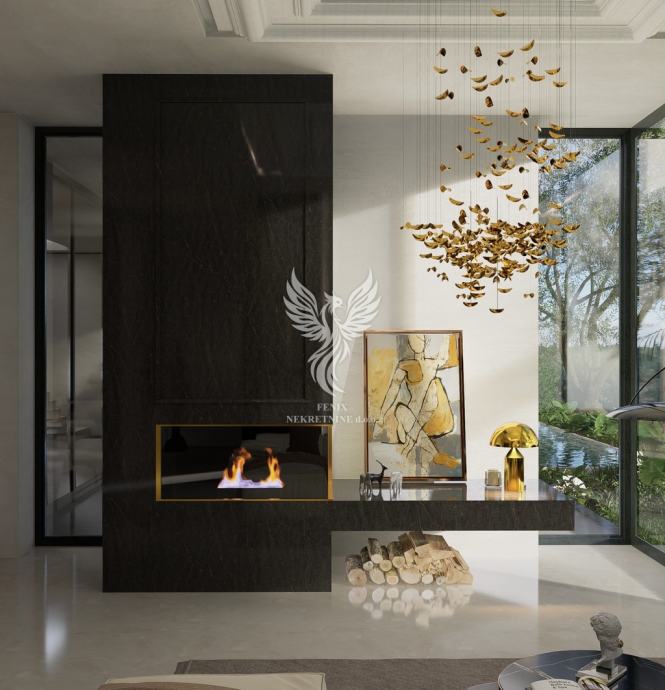 Vila se sastoji od prizemlja i prvog kata. Prizemlje se sastoji ulaznog prostora, spremišta, wc-a, prostrane kuhinje s blagovaonicom i dnevnim boravkom iz kojih se izlazi na veliku natkrivenu terasu, hodnika, master sobe s kupaonicom, wc-om i garderobom, te stubišta koje vodi na prvi kat. Prvi kat se sastoji od hodnika, vešeraja, triju soba od kojih svaka ima vlastitu kupaonicu. Oko vile se nalazi predivan vrt u kojem se nalazi bazen, a dio dvorišta je ostavljen za parkirna mjesta.