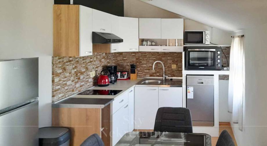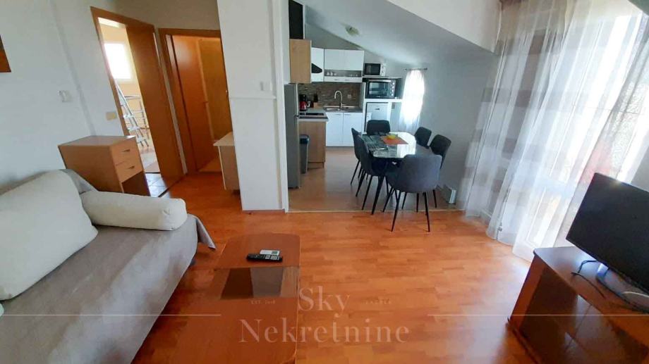 Na katu se nalaze tri prostrane spavaće sobe, svaka s vlastitom kupaonicom, pružajući maksimalnu udobnost i privatnost. Kuhinja s dnevnim boravkom stvara ugodan prostor za obitelj i goste. Posebna prednost ovog kata su tri terase, od kojih dvije pružaju prekrasan pogled na more, idealne za opuštanje i uživanje u spektakularnim zalascima sunca.