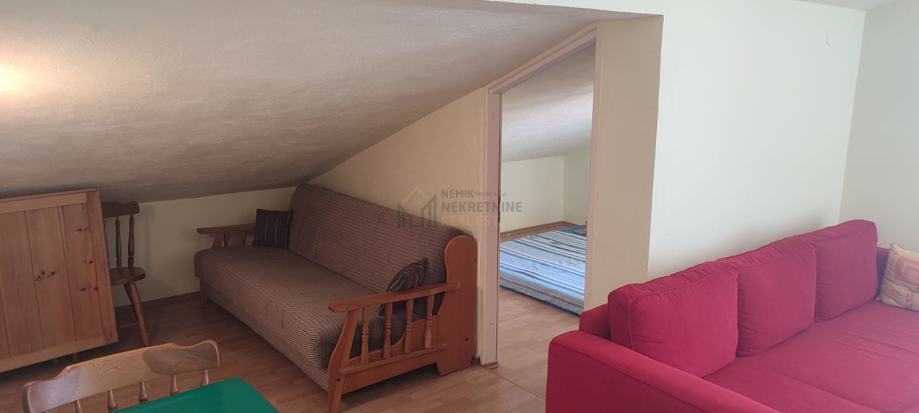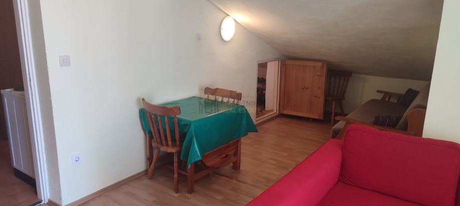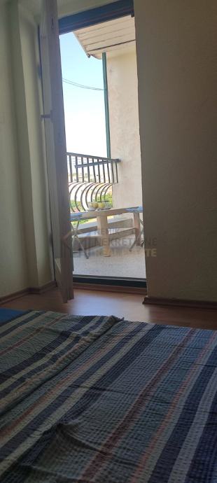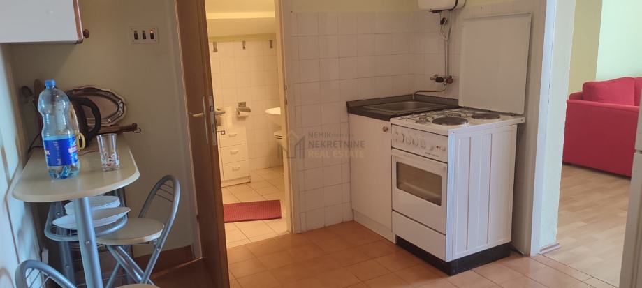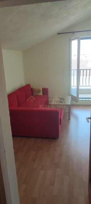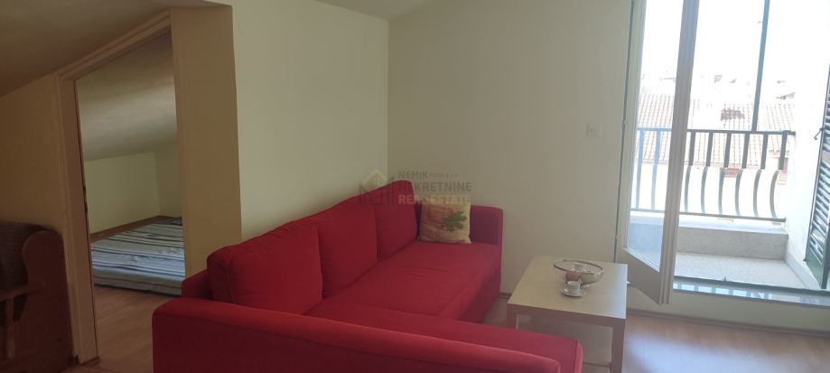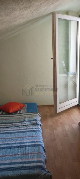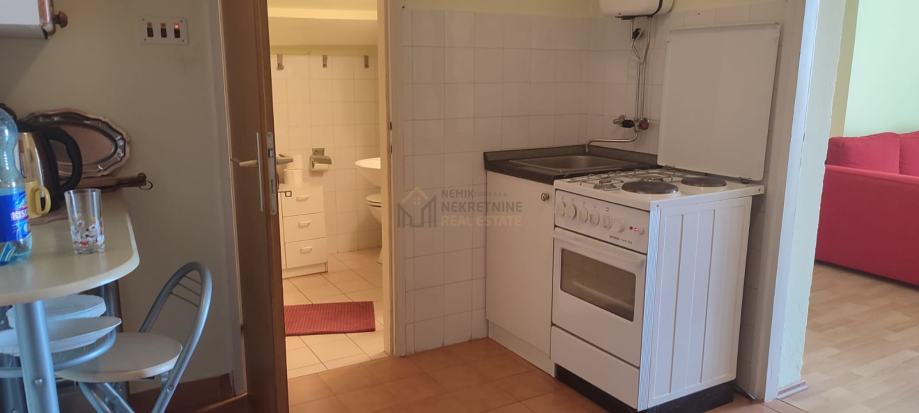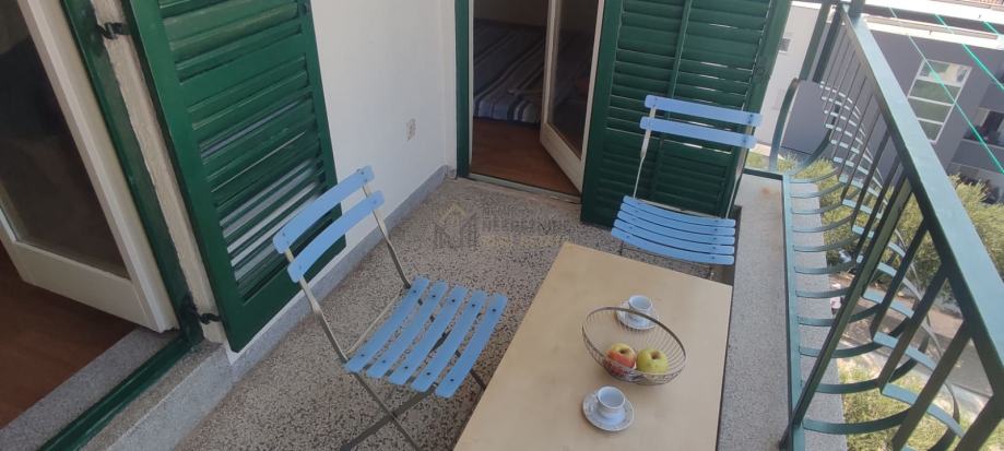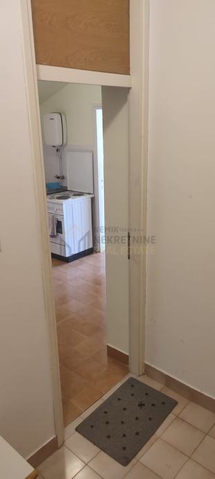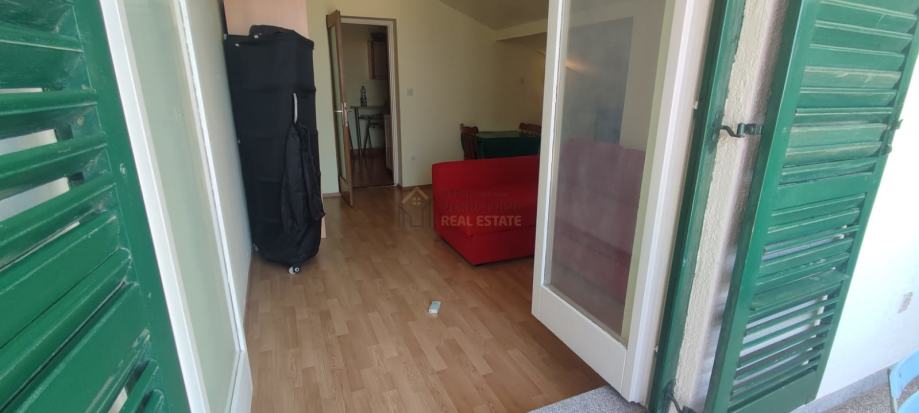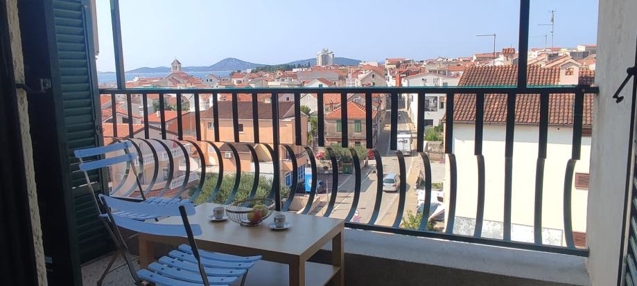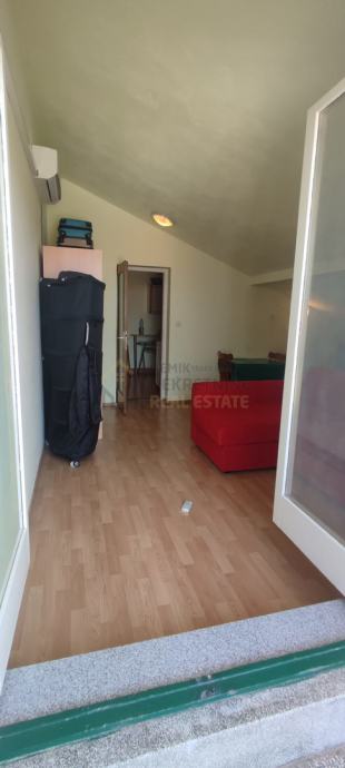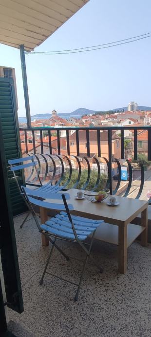 Lokacija je bitan segment ovog malog apartmana. Nalazi se u samom centru Vodica, na četvrtom katu manje stambene zgrade. Trgovine, ljekarna, pijaca i sve ostalo dostupno pješačkim putem. Pogled na more i jugozapadni dio grada sa vlastite logie. Sastoji se od ulaznog dijela, manje kuhinje i blagovaonice sa izlazom na natkrivenu lođu okrenutu prema jugozapadnom dijelu grada s otvorenim pogledom prema moru, jedne izdvojene prostorije gdje je smještena manja spavaća soba koja ima izlaz na isti balkon i kupaonice te malog spremišta. Apartmanu je neophodna renovacija. Vlasništvo uredno bez tereta. Dokumentacija dostupna na uvid u našem uredu.