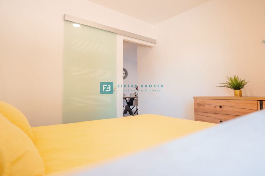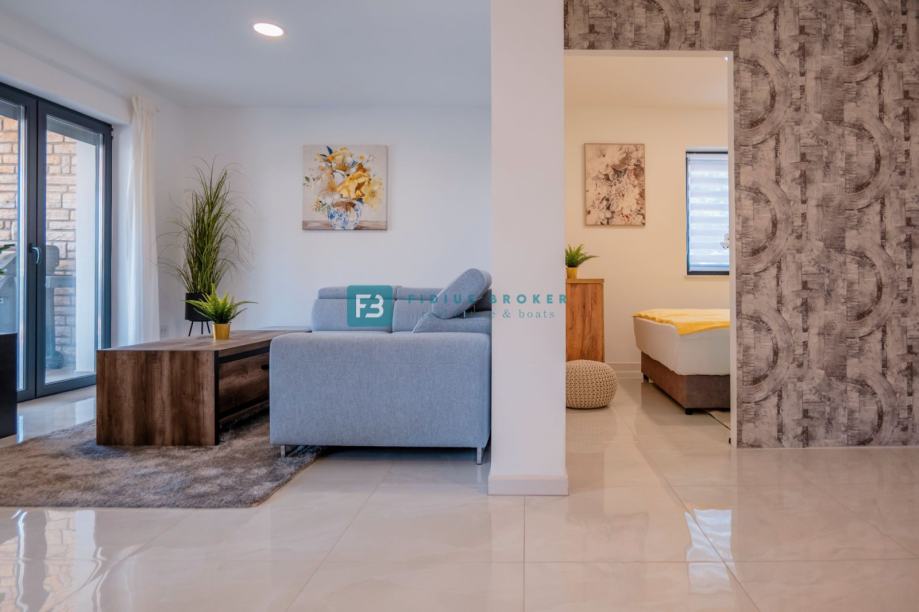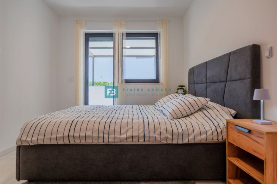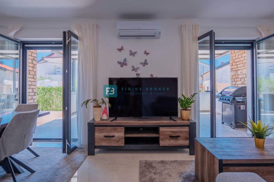 VODICE, novo, moderan namješten stan, 300 m do plaže, vrt (prodaja)