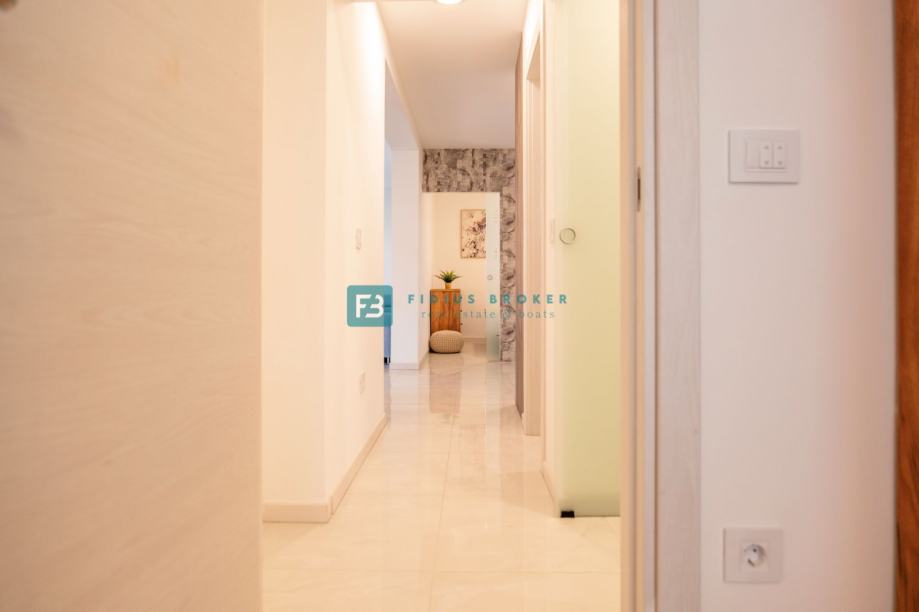 Potpuno iz temelja renovirana manja stambena zgrada sa ukupno 5 stanova. Stambeni objekt modernog izgleda sastoji se od tri etaže: prizemlje + 1. kat + 2. kat. Zgrada je građena kvalitetnim materijalima i opremljena prema posljednjim standardima gradnje: termo fasada, vanjska ALU stolarija s trostrukim ISO staklima, električne podizači roleta i komarnici, kompletno nove instalacije, kvalitetna keramika i laminat, unutarnja drvena vrata ojačana kvalitetnim duplim pantima i magnetnim bravama, klima uređaj marke Mitsubishi, Villeroy & Boch sanitarije u kupaonicama, električno podno grijanje u kupaonicama, protuprovalna ulazna vrata, staklena ograda, kamera na ulazu u zgradu. Svaki stan ima svoje vlastito brojilo za vodu i struju, a dodatna prednost je što zgrada spojena na gradski kanalizacijski sustav.