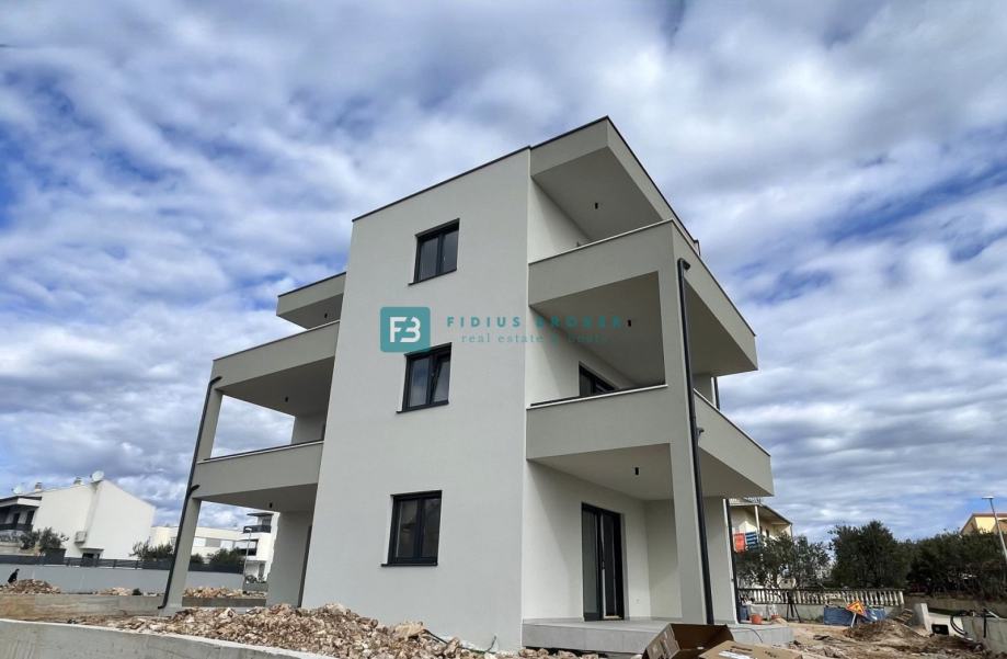 VODICE, novo, moderan stan, terasa, 2 spavaće sobe, 2 parkinga (prodaja)
