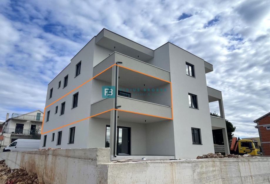 VODICE, novo, moderan stan, terasa, 2 spavaće sobe, 2 parkinga (prodaja)