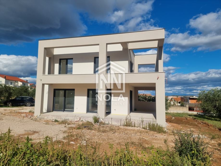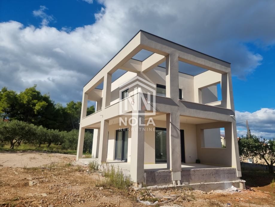 Na mirnoj i atraktivnoj lokaciji u Vodicama smjestena je ova moderna samostojeca kuca, projektirana kao jedna stambena jedinica, s ukupnom korisnom povrsinom od 158,09 m2, dok ukupna povrsina parcele iznosi 619 m2. Kuca se prostire na prizemlje i kat, a svojim rasporedom i vanjskim sadrzajima pruza savrsenu ravnotezu izmedu funkcionalnosti, komfora i privatnosti.