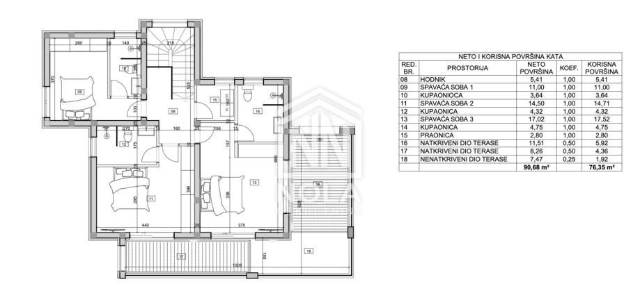 Na katu su smjestene tri komforne spavace sobe, svaka s dovoljno prostora i prirodnog svjetla, dizajnirane za maksimalnu udobnost i privatnost clanova obitelji ili gostiju.