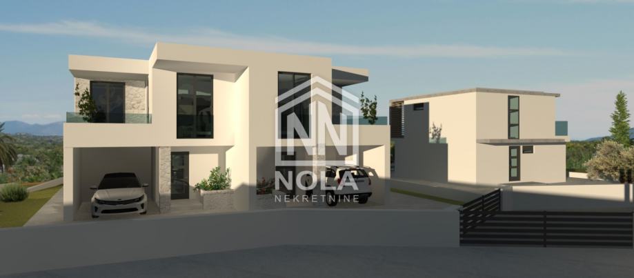 Na izuzetno atraktivnoj lokaciji, u rezidencijalnom dijelu, smjestila se ova moderna kuća, koja se u sastavu dvojne kuće koja je na građevinskom zemljištu od 604 m2.