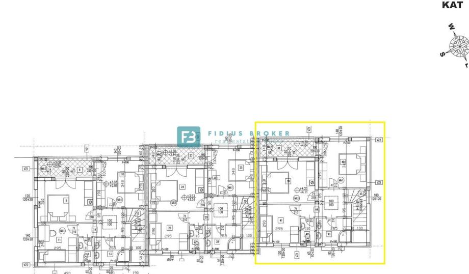 Kuća u nizu modernog dizajna i funkcionalnog rasporeda površine od 130 m2 proteže se na dvije etaže: prizemlje + kat. U prizemlju se nalazi kuhinja s blagovaonicom, spavaća soba, prostrani dnevni boravak i kupaonica. Iz dnevnog boravka i kuhinje izlazi se na natkrivenu terasu i uređeno dvorište površine 90 m2 gdje se nalazi vanjski prostor za druženje sa sjedećom garniturom i roštiljem. Unutarnje stubište vodi na kat gdje se nalaze tri prostrane spavaće sobe, WC i kupaonica. Dvije sobe imaju izlaz na balkon. Kuća posjeduje vanjsko parking mjesto.