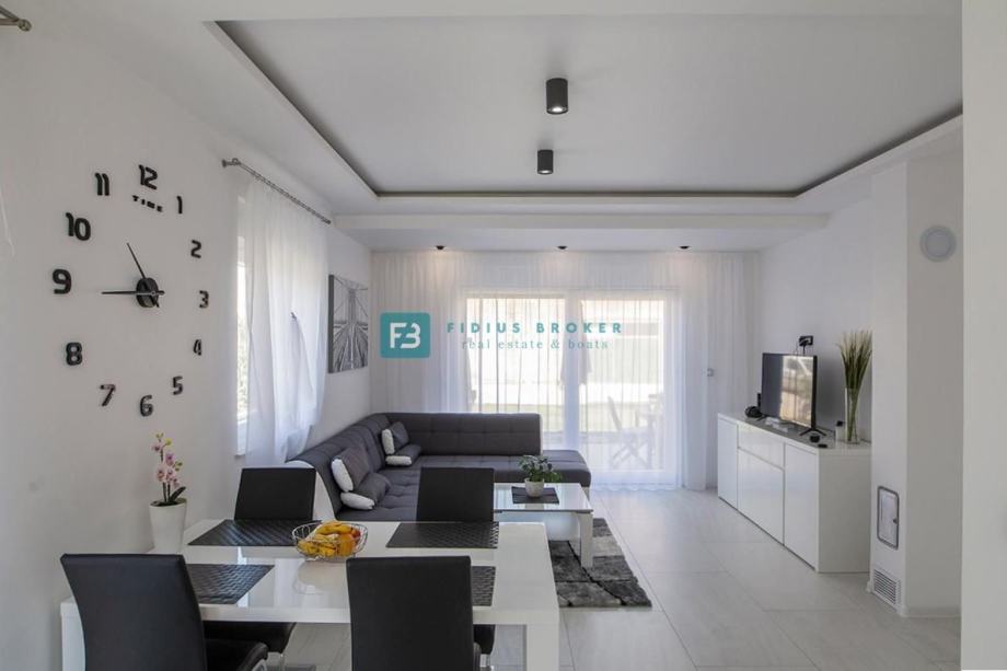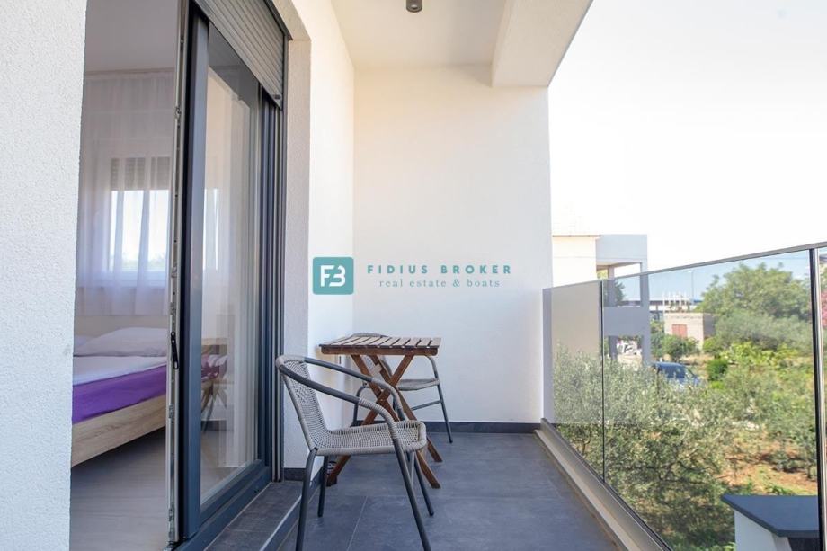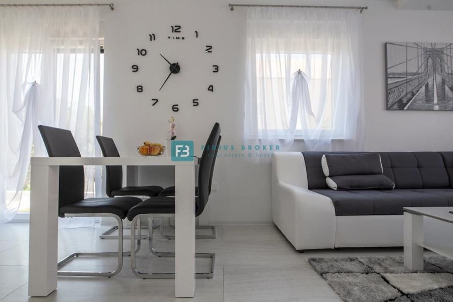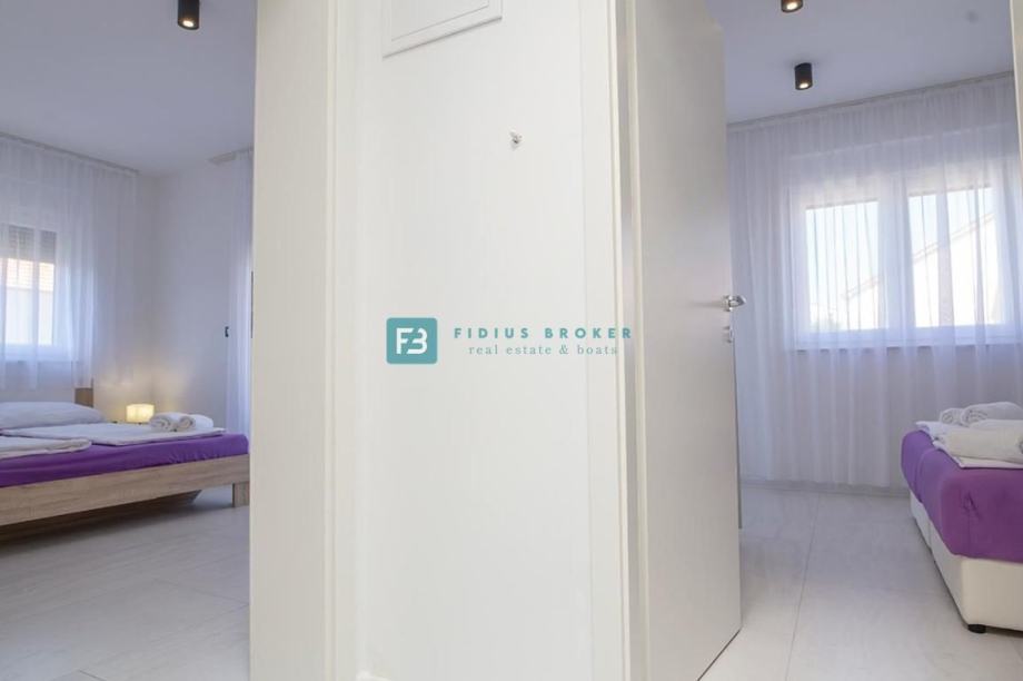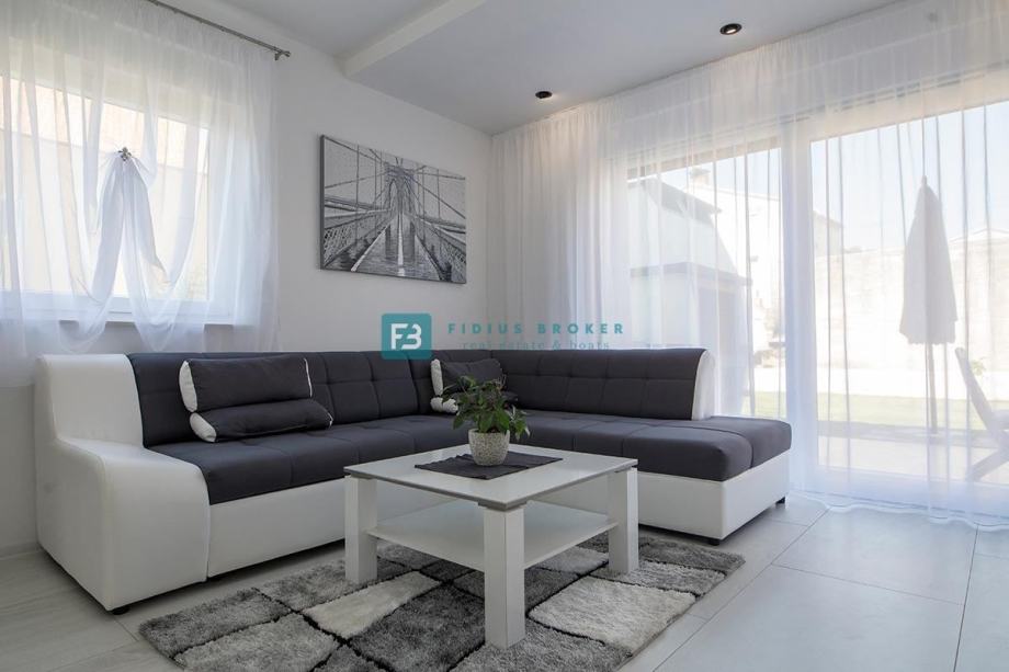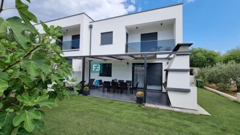 VODICE, novo, moderna namještena kuća, 650 m do plaže, dvorište (prodaja)