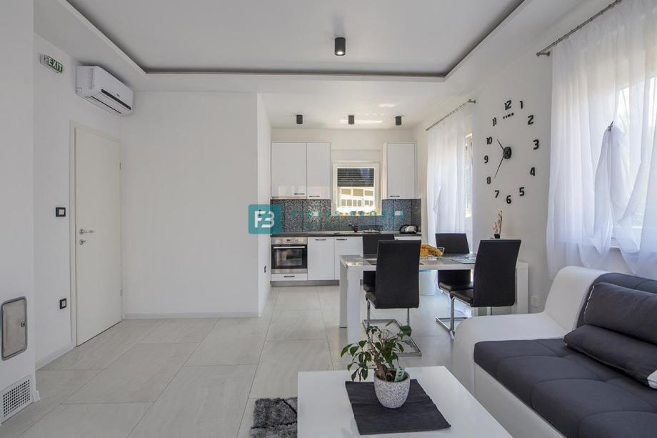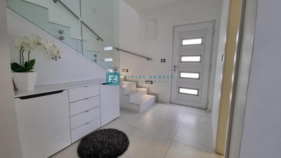 Dvoetažna nekretnina građena je vrhunskim materijalima i opremljena luksuznim uređajima kako bi pružila vrhunski životni standard. Od opreme izdvajamo: stiropor fasada, protuprovalna ulazna vrata, klima uređaj u svakoj prostoriji, kvalitetna PVC stolarija s komarnicima, staklena ograda, keramičke podne obloge, električne rolete, kvalitetne sanitarije. Kuća je potpuno namještena i opremljena te je kao takva odmah useljiva.