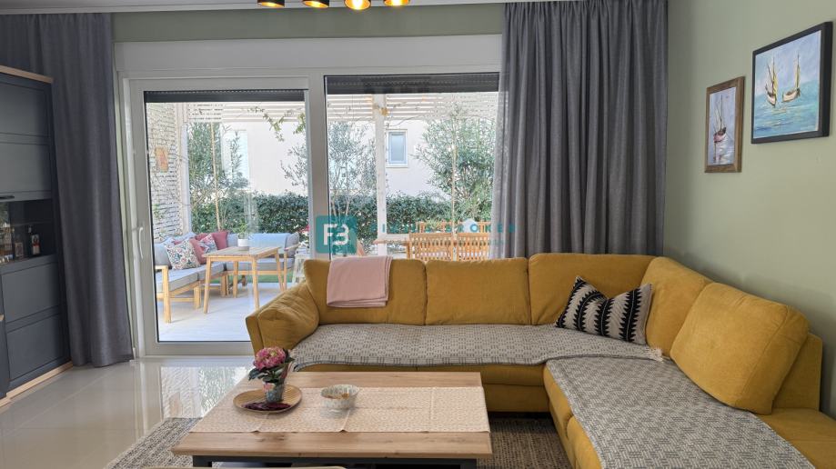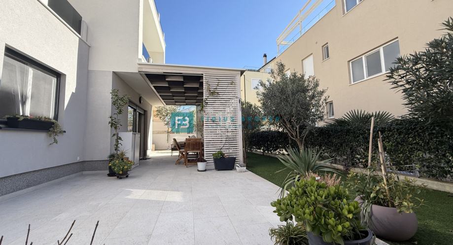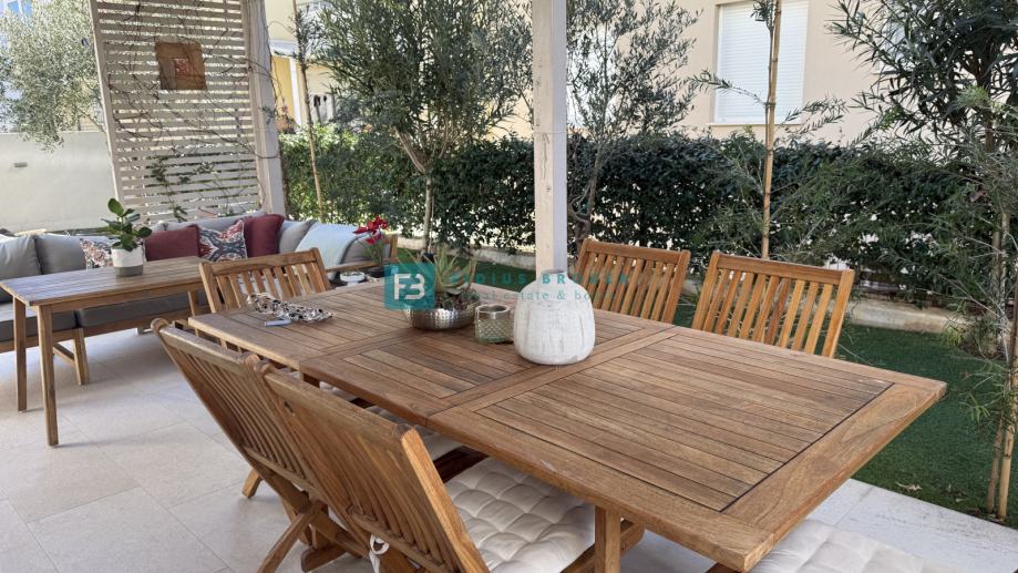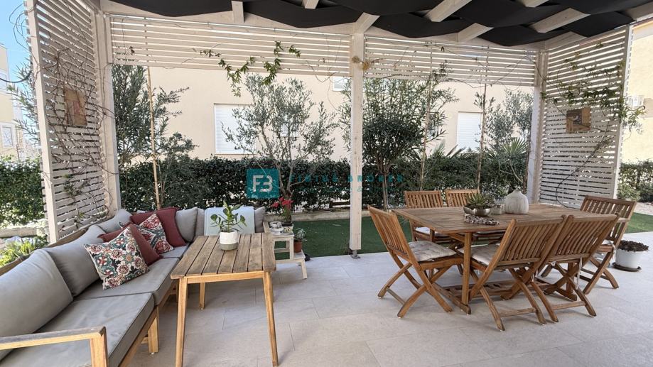 VODICE - Prodaje se luksuzno namješten stan s tri spavaće sobe, prostranim vrtom površine 155 m2 i spremištem u podrumu!