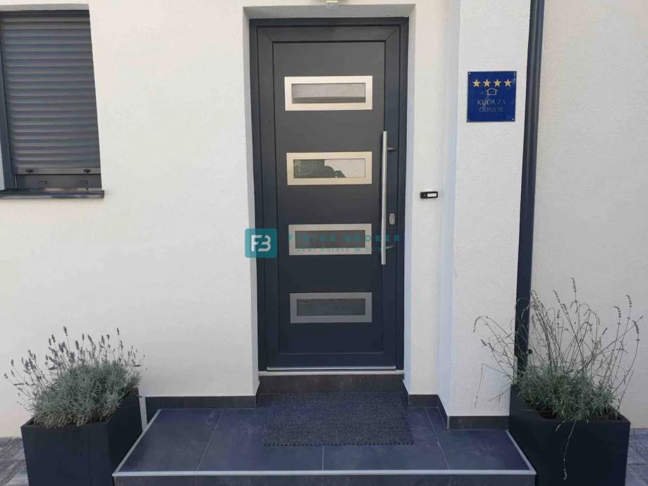 Dvoetažna nekretnina građena je vrhunskim materijalima i opremljena luksuznim uređajima kako bi pružila vrhunski životni standard. Od opreme izdvajamo: stiropor fasada, protuprovalna ulazna vrata, klima uređaj u svakoj prostoriji, kvalitetna PVC stolarija s komarnicima, staklena ograda, keramičke podne obloge, električne rolete, kvalitetne sanitarije. Kuća je potpuno namještena i opremljena te je kao takva odmah useljiva.
