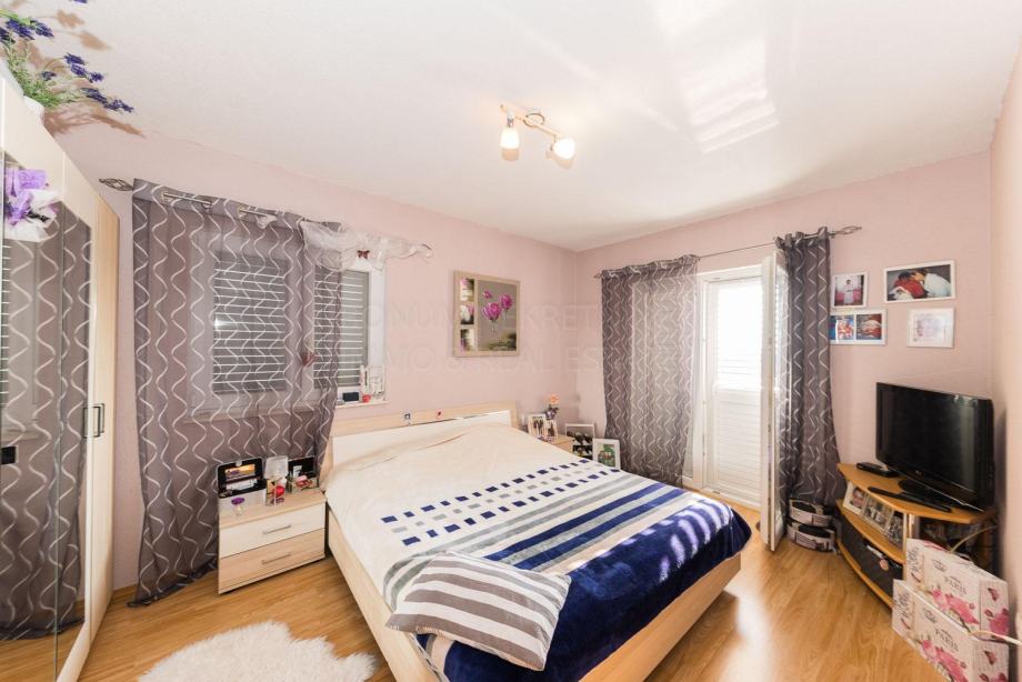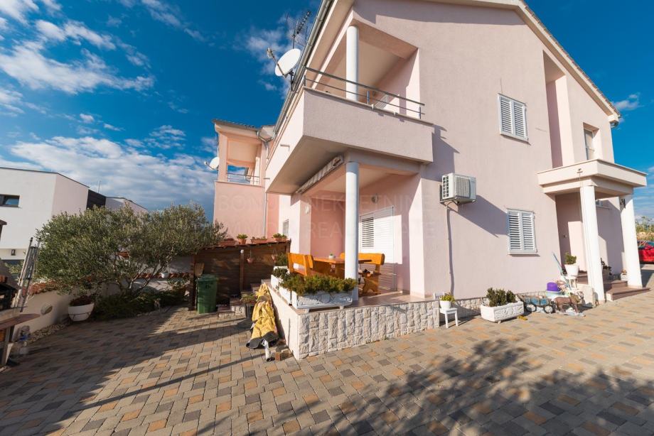 Prodaje se prekrasna namještena dvojna kuća u Vodicama. Sastoji se od prizemlja i kata te tavanskog prostora. U prizemlju se nalazi kuhinja sa blagovaonom, dnevni boravak, spremište, kupaona te spavaća soba. Iz dnevnog dijela je izlaz na lijepu natkrivenu terasu. Unutarnjim stubištem se ide na prvi kat gdje se nalaze dvije spavaće sobe od kojih jedna ima i garderobu, kupaonica te balkon. Kuća ima i lijep pogled na more. Dvorište je uređeno te se u njemu nalazi i roštilj te manje spremište za drva. Nalazi se na mirnoj lokaciji te je odmah useljiva.