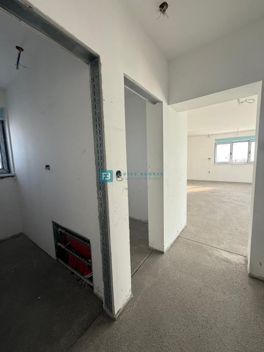 Objekt se nalazi na mirnoj lokaciji, u novoj stambenoj zoni, udaljen je 1700 m od centra grada i 2000 m od gradske plaže. Trenutno je u izgradnji nova manja stambena zgrada sa ukupno 4 stambene jedinice. Stambeni objekt modernog izgleda sastoji se od dvije etaže: prizemlje + 1. kat. Zgrada se gradi kvalitetnim materijalima i biti će opremljena prema posljednjim standardima gradnje. Od opreme izdvajamo: stiropor fasada, Schüco stolarija antracit boje, protuprovalna ulazna vrata, rolete s električnim podizačima, komarnici, kvalitetne podne obloge, moderne kupaonske sanitarije, podno grijanje svim prostorijama, staklena ograda na terasama, klima uređaji u spavaćim sobama i dnevnom boravku. Okućnica će biti uređena prema projektu. Planirani završetak radova i useljenje - 04./2026. godine.