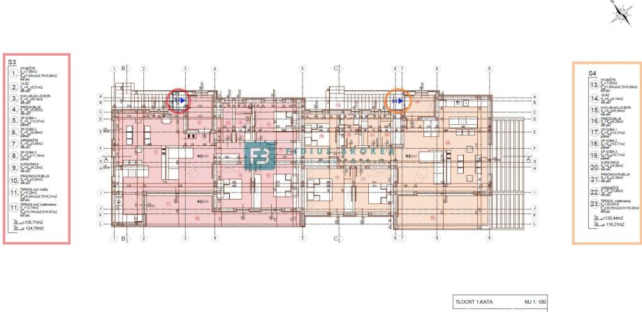 Stan S4 neto korisne površine 121,46 m2 (bruto površine 130,44 m2) nalazi se na 1. katu. Sastoji se od ulaza, predsoblja, tri spavaće sobe, kupaonice, spremišta, praonice rublja, open space kuhinje s blagovaonicom, dnevnog boravka s izlazom na natkrivenu terasu površine 20,55 m2 s koje se pruža pogled na more. Stanu pripada jedno vanjsko parkirno mjesto.