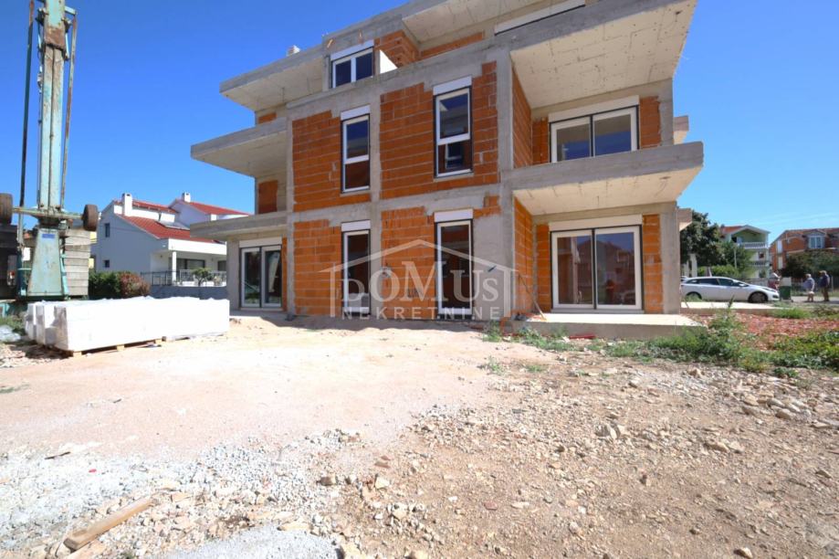 Novogradnja, stambena zgrada s 8 stambenih jedinica. Zgrada ima ukupno tri etaže: prizemlje, prvi kat i drugi kat. Zgrada je moderno uređena sa visokokvalitetnom opremom: podno grijanje u kupaonama, klima uređaji za grijanje i hlađenje u svakoj prostoriji, kvalitetna stolarija, prozori sa električnim podizačima roleta, komarnici, protuprovalna vrata, moderna kupaonska oprema. Očekivani datum useljenja: ljeto 2026. Kupac ne plaća porez na promet nekretnina prilikom kupnje.