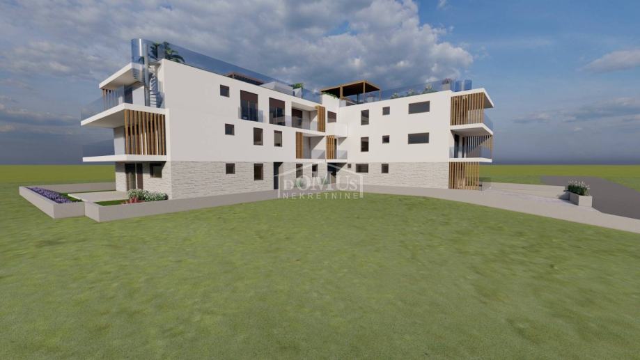 Vodice, u blizini plaže Hangar, nalazi se novoizgrađena luksuzna stambena zgrada u rohbau fazi s 12 stambenih jedinica. Zgrada ima ukupno tri etaže: prizemlje, prvi kat i drugi kat. Zgrada je moderno uređena s podnim grijanjem u kupatilima i dnevnom boravku, visokokvalitetnim podovima i unutarnjim uređenjem, klima uređajima za u svakoj prostoriji, te električnim roletama.