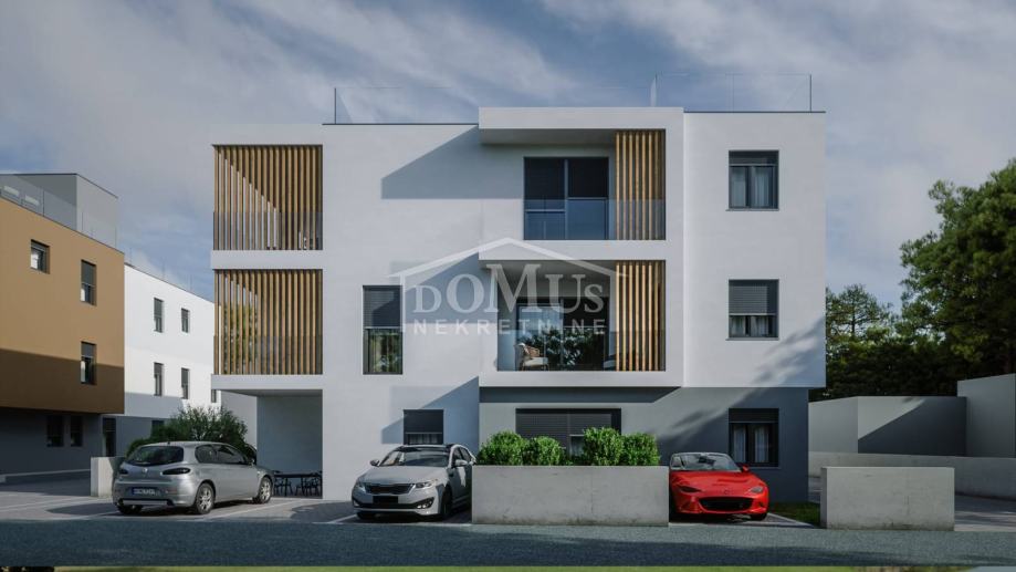 Novogradnja, stambena zgrada s 8 stambenih jedinica. Zgrada ima ukupno tri etaže: prizemlje, prvi kat i drugi kat. Zgrada je moderno uređena sa visokokvalitetnom opremom: podno grijanje u kupaonama, klima uređaji za grijanje i hlađenje u svakoj prostoriji, kvalitetna stolarija, prozori sa električnim podizačima roleta, komarnici, protuprovalna vrata, moderna kupaonska oprema. Očekivani datum useljenja: ljeto 2026. Kupac ne plaća porez na promet nekretnina prilikom kupnje.