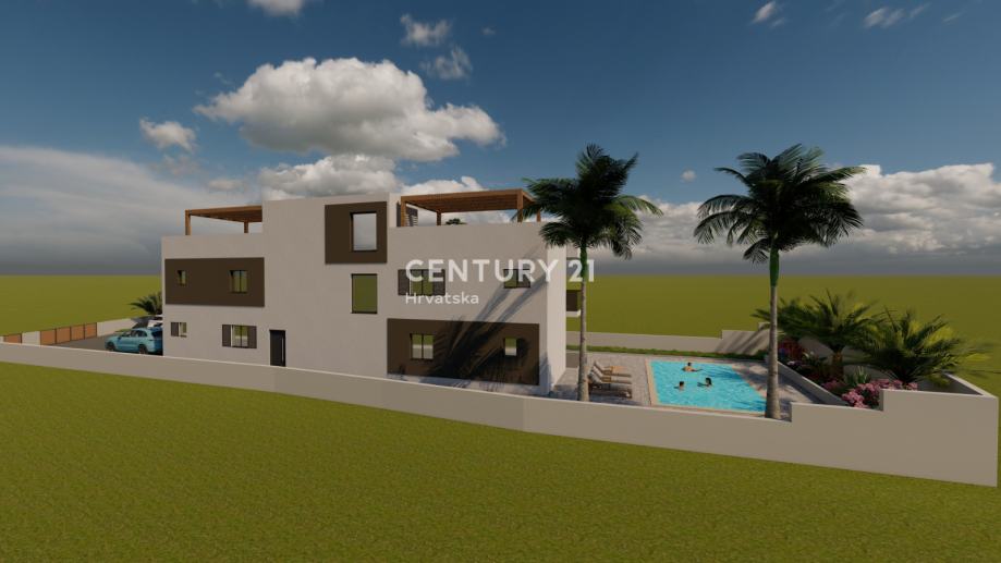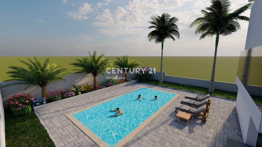 Vodice, novogradnja s dvije spavaće sobe, terasom i bazenom (prodaja)