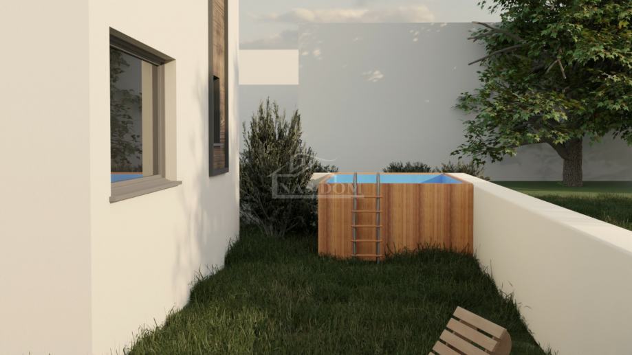 S2 STAN stambene površine 77,24m2 sastoji se od ulaz, kupaonica, kuhinja, blagovaonica i dnevni boravak s izlazom na terasu i vrt u prizemlju. Unutarnjim stubištem se ide na kat koji se sastoji od hodnika, tri spavaće sobe i kupaonica te izlaz na krovnu terasu. Stanu pripada vrt površine cca 30m2 i dva parkirna mjesta.