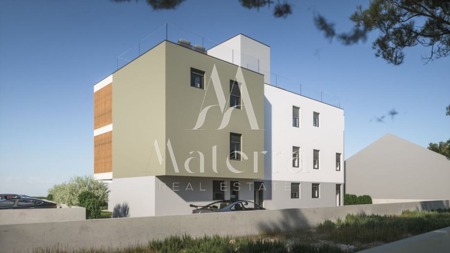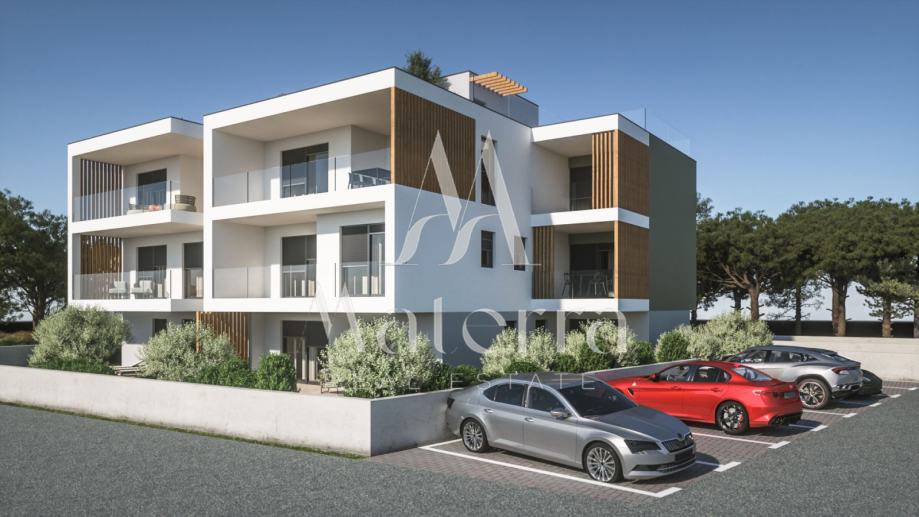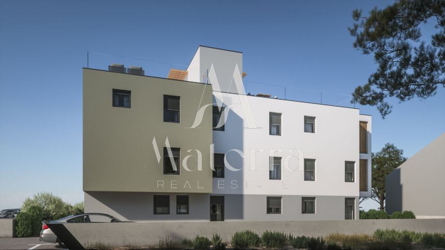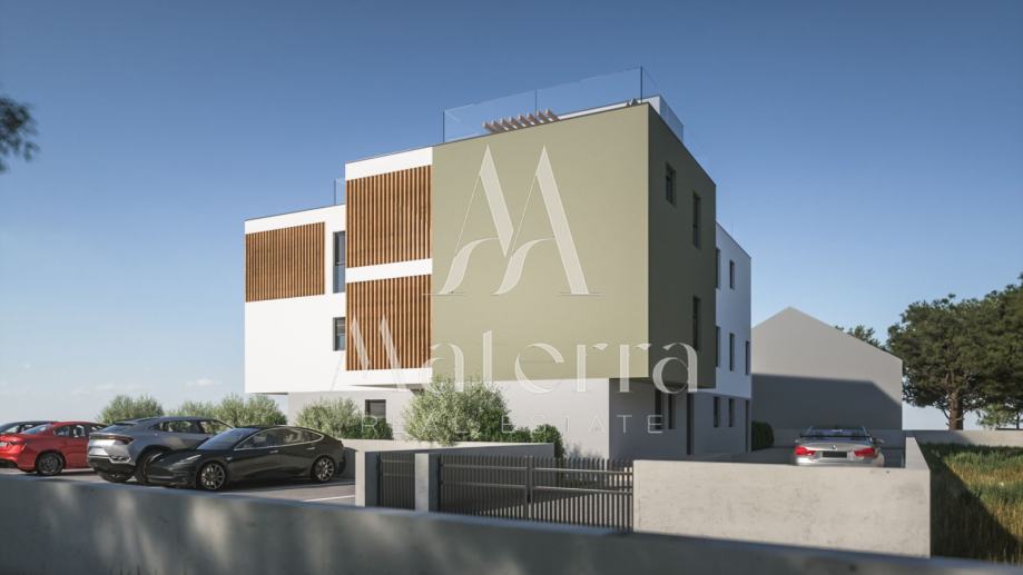 Na prodaju je stan SJ2 smješten na prvom katu moderne novogradnje u naselju Vodice, u neposrednoj blizini Šibenika. Ukupna površina stana iznosi 65,04 m², a sastoji se od ulaza, dnevnog boravka i kuhinje sa blagovaonom, dvije spavaće sobe, kupaone te izlaza na terasu i dvorište, sa vlastitim parkirnim mjestom. Zgrada se gradi prema suvremenim standardima gradnje, s naglaskom na kvalitetu materijala i završne obrade. U opremanju će se koristiti vrhunska stolarija, moderna keramika i visokokvalitetne sanitarije. Lokacija je izuzetno pogodna kako za svakodnevno stanovanje tako i za odmor, s obzirom na to da se plaža nalazi na svega 500 metara udaljenosti. Završetak gradnje planiran je za 2026. godinu.