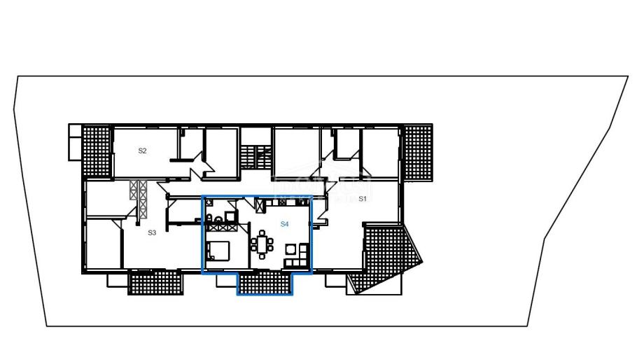 Stan SJ12 nalazi se na drugom katu zgrade, ukupne korisne površine 55,93 m², i sastoji se od ulaznog hodnika, kupaonice, jedne spavaće, kuhinje i dnevnog boravka s izlazom na lođu od 7,56 m². Stan je modernog dizajna i funkcionalnog rasporeda, opremljen klima-uređajima u dnevnom boravku i spavaćoj sobi, protuprovalnim ulaznim vratima, PVC stolarijom te modernom kupaonskom opremom. Uz stan dolazi jedna garaža.