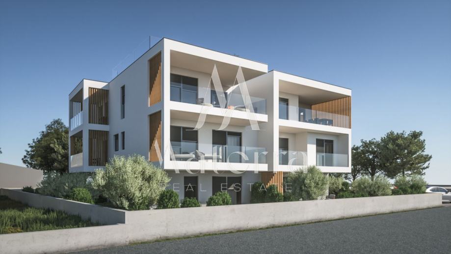Na prodaju je stan SJ1 smješten u prizemlju moderne novogradnje u naselju Vodice, u neposrednoj blizini Šibenika. Ukupna površina stana iznosi 54,00 m², a sastoji se od ulaza, dnevnog boravka i kuhinje sa blagovaonom, spavaće sobe, kupaone te izlaza na terasu i dvorište, sa vlastitim parkirnim mjestom. Zgrada se gradi prema suvremenim standardima gradnje, s naglaskom na kvalitetu materijala i završne obrade. U opremanju će se koristiti vrhunska stolarija, moderna keramika i visokokvalitetne sanitarije. Lokacija je izuzetno pogodna kako za svakodnevno stanovanje tako i za odmor, s obzirom na to da se plaža nalazi na svega 500 metara udaljenosti. Završetak gradnje planiran je za 2026. godinu.