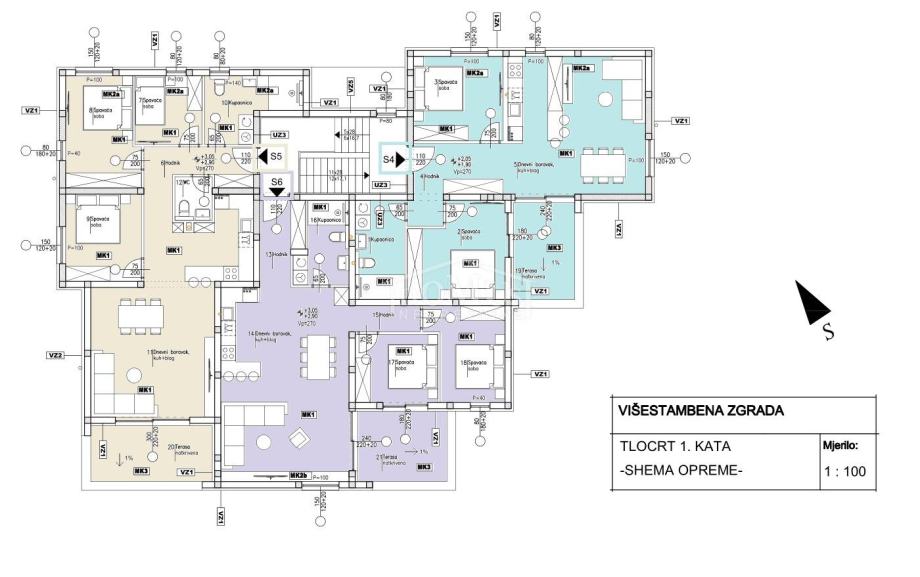 Stambena jedinica S6 ima korisnu površinu od 82,95 m². Smještena je na 1.katu zgrade i orijentirana prema zapadnu. Sastoji se od ulaza, hodnika, kupaonice, dvije spavaće sobe te prostranog dnevnog boravka povezanog s kuhinjom i blagovaonicom, iz kojeg se izlazi na terasu. Terasa od 10,20 m² je natkrivena i ima pogled na more. Ovoj stambenoj jedinici pripada jedno parkirno mjesto.