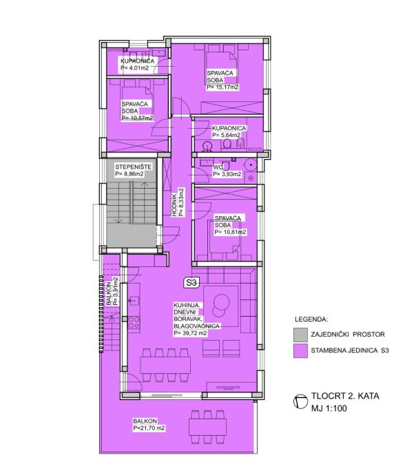 Na iznimnoj lokaciji u centru Vodica, svega 200 metara od mora, nalazi se ovaj prostrani penthouse na drugom katu novogradnje visoke kvalitete, neto korisne površine 150,94 m². Stanu pripadaju tri privatna parkirna u dvorištu zgrade, te krovna terasa koja se prostire cijelom površinom krova. Ukupna zatvorena površina stana iznosi 98,18 m².Stan je funkcionalno i moderno osmišljen, a sastoji se od prostranog dnevnog boravka s kuhinjom i blagovaonicom, tri spavaće sobe (od kojih jedna ima vlastitu kupaonicu), dodatne kupaonice te zasebnog toaleta. Iz dnevnog boravka izlazi se na veliku terasu površine 22,31 m², te dalje stepenicama na krovnu terasu površine 123,03 m², opremljenu jacuzziem, vanjskim tušem i pergolom ispod koje je predviđena ljetna kuhinja.Zgrada je građena prema najvišim standardima gradnje i opreme. Izdvajamo:podno grijanje na toplinsku pumpuMitsubishi klima uređaje u svim prostorijamavrhunsku stolariju s troslojnim staklomvideo parlafonpripremu za punionicu električnih vozila na parkirnom mjestupametnu parking rampu s očitavanjem registarskih oznakaLokacija zgrade dodatno povećava vrijednost nekretnine - mirna, a istovremeno centralna pozicija, na nekoliko minuta hoda od mora, plaže i svih sadržaja, čini ovu novogradnju jednom od rijetkih i najpoželjnijih u ovom dijelu Vodica.Za sve dodatne informacije i razgledavanje, slobodno nas kontaktirajte....