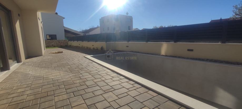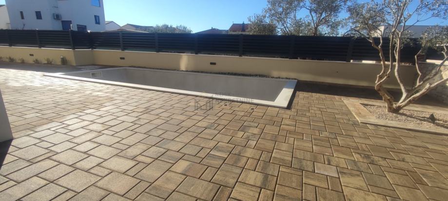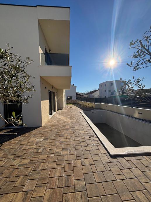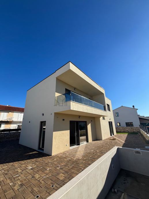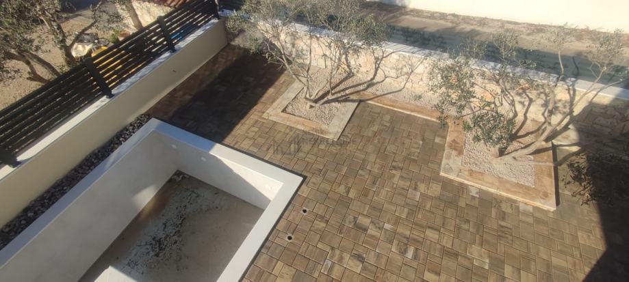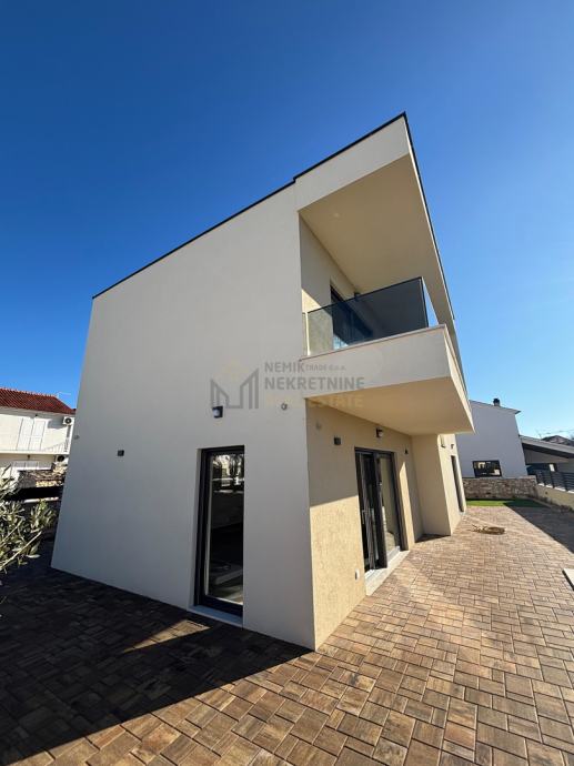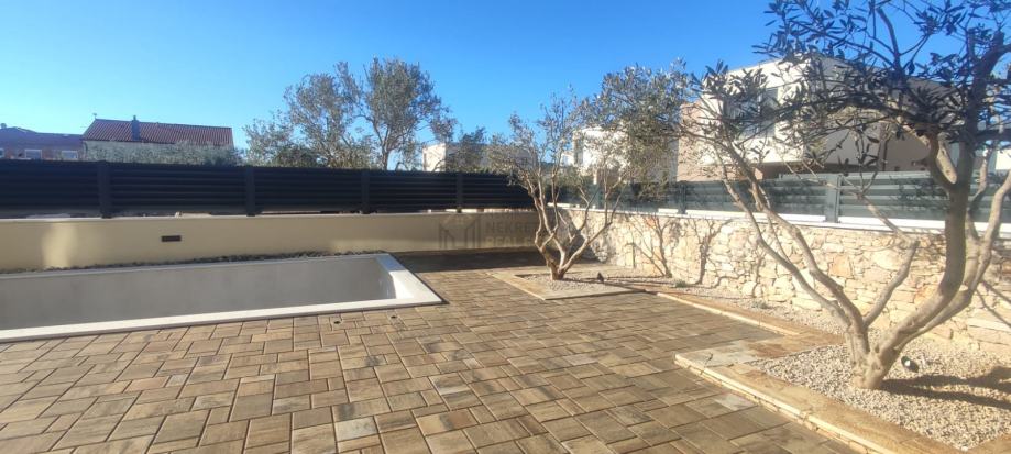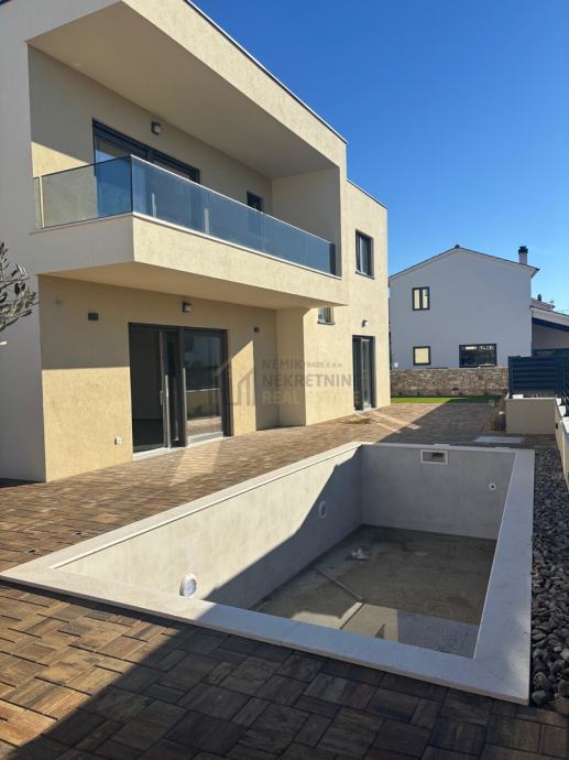 Odlična lokacija, miran kvart, uređena okućnica i vlastiti bazen, sve su to karakteristike ovog prekrasnog objekta. Samostojeća kuća, na pristojnoj udaljenosti od susjednih objekata sa predivno uređenom okućnicom i zasađenim raznim mediteranskim biljem i maslinovim stablima sa ugrađenim navodnjavanjem: kap na kap, daje mediteransku draž ovoj kući. Nalazi se na zemljištu od 403 m2 , ukupne kvadrature od 126,81 m2. Prostire se na dvije etaže, prizemlje i kat. U prizemlju je smješten ulazni dio , kuhinja i blagovaona, prostrani dnevni boravak sa izlazom na terasu gdje se smjestio bazen od 21 m2 ( 7x3 ) sa sunčalištem. Unutarnjim stepeništem dolazi se na prvi kat gdje su se smjestile tri spavaće sobe ( od toga jedna MASTER sa vlastitom kupaonom i terasom ), vešeraj, još jedna terasa te dodatna kupaona.