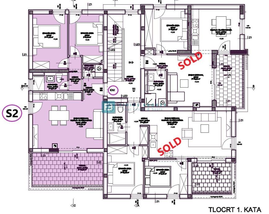 Stan S1 ukupne korisne površine 67,89 m2 (stambena površina 48,80 m2 + terasa 13,34 m2 + vrt 13 m2 + parking 15 m2) nalazi se u prizemlju. Sastoji se od hodnika, dvije spavaće sobe, kupaonice, dnevnog boravka s kuhinjom i blagovaonicom, te terase s izlazom na dvorište površine 13 m2. Stanu pripada jedno parking mjesto. Cijena iznosi 245.000 € (PDV uključen - kupac je oslobođen plaćanja 3% poreza na promet nekretninama).