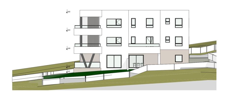 Višestambena zgrada u novogradnji sa ukupno 10 stanova, nalazi se na izvrsnoj lokaciji te ima panoramski pogled na more i grad. Zgrada ima ukupno četiri etaže: suteren + prizemlje + 1. kat + 2. kat. Zgrada modernog izgleda se gradi kvalitetnim materijalima prema posljednjim standardima gradnje i biti će opremljena: stiropor fasada, ALU stolarija s troslojnim staklom, ALU balkonska klizna vrata, električni podizači roleta, podovi obloženi prirodnim kamenom Plano, moderne kupaonske sanitarije, klima uređaj u spavaćim sobama i dnevnom boravku, TV priključak u spavaćim sobama i dnevnom boravku, podno grijanje preko toplotne pumpe, staklena ograda na terasama. Zgrada ima lift i spremište. Svaka stambena jedinica posjeduje parkirno mjesto unutar dvorišta zgrade te jedno spremište u suterenu zgrade (podrum). Stanovima u prizemlju S1, S2 i S3 pripada jedan dio vrta. Terase svih stambenih jedinica imat će pogled na more. Postoji mogućnost kupnje dodatnog parkirnog mjesta po cijeni od 7.500 €. Predviđeni termin useljenja - ljeto 2026. godine