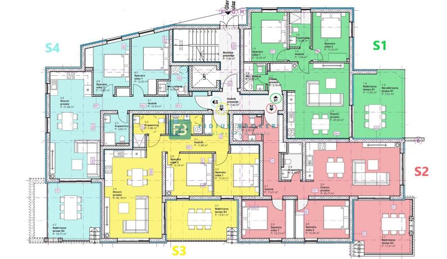 Stan S4 smješten je u prizemlju zgrade, orijentiran na zapadnu stranu. Sastoji se od ulaznog prostora, WC/praonice, spavaće sobe 1, spavaće sobe 2, hodnika, kupaonice, kuhinje s blagovaonicom i dnevnog dijela koji ima izlaz na prostranu natkrivenu terasu površine 16,73 m2. Stanu pripada ostava u podrumu i jedno parkirno mjesto. Ukupna korisna površina iznosi 83,73 m2. Cijena iznosi: 336.800 € (PDV uključen - kupac je oslobođen plaćanja 3% poreza na promet nekretninama).