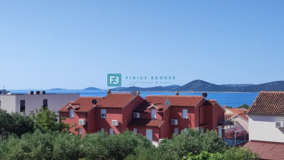 VODICE - Na prodaju moderan stan s 2 spavaće sobe u prizemlju i pogledom na more, udaljen 750 m od plaže i centra!