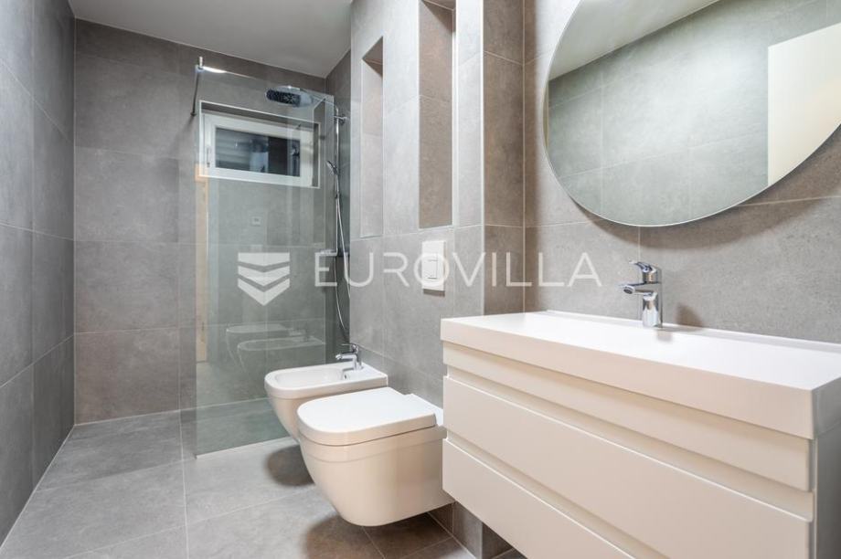 Na iznimnoj lokaciji u centru Vodica, svega 200 metara od mora, nalazi se ovaj prostrani apartman u prizemlju novogradnje visoke kvalitete, neto korisne površine 146,06 m². Nekretnini pripadaju tri privatna parkirna mjesta te prostrano dvorište površine 160 m², što predstavlja rijetkost u ovom dijelu mjesta. Ukupna zatvorena površina stana iznosi 98,18 m².Stan je funkcionalno i moderno osmišljen, a sastoji se od prostranog dnevnog boravka s kuhinjom i blagovaonicom, tri spavaće sobe (od kojih jedna ima vlastitu kupaonicu), dodatne kupaonice te zasebnog toaleta. Iz dnevnog boravka izlazi se na veliku terasu površine 22,93 m², koja je povezana s ostatkom dvorišta i čini savršen prostor za boravak na otvorenom.Veliko privatno dvorište pruža brojne mogućnosti uređenja - od zone za roštilj i druženje, do prostora za dječje igralište ili dodatni vrt, čime se dodatno naglašava ekskluzivnost ove nekretnine.Zgrada je građena prema najvišim standardima gradnje i opreme. Izdvajamo:podno grijanje na toplinsku pumpuMitsubishi klima uređaje u svim prostorijamavrhunsku stolariju s troslojnim staklomvideo parlafonpripremu za punionicu električnih vozila na parkirnom mjestupametnu parking rampu s očitavanjem registarskih oznakaLokacija zgrade dodatno povećava vrijednost nekretnine - mirna, a istovremeno centralna pozicija, na nekoliko minuta hoda od mora, plaže i svih sadržaja, čini ovu novogradnju jednom od rijetkih i najpoželjnijih u ovom dijelu Vodica.Za sve dodatne informacije i razgledavanje, slobodno nas kontaktirajte....