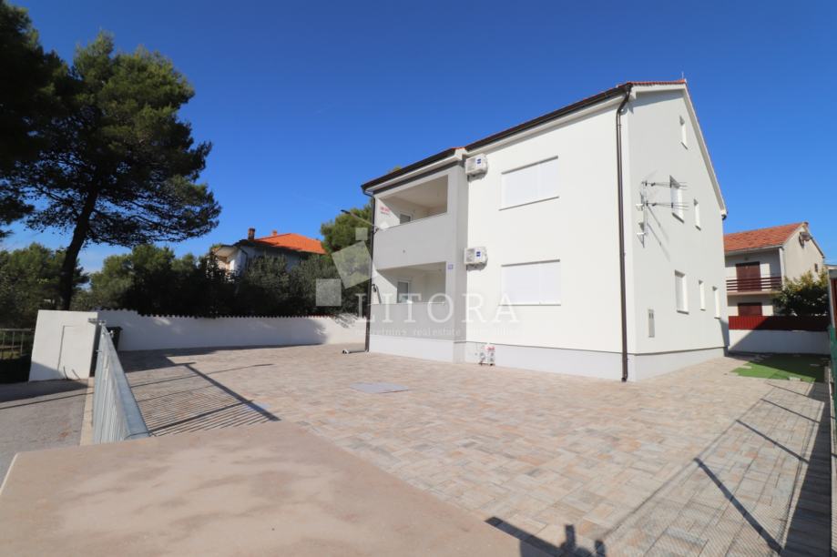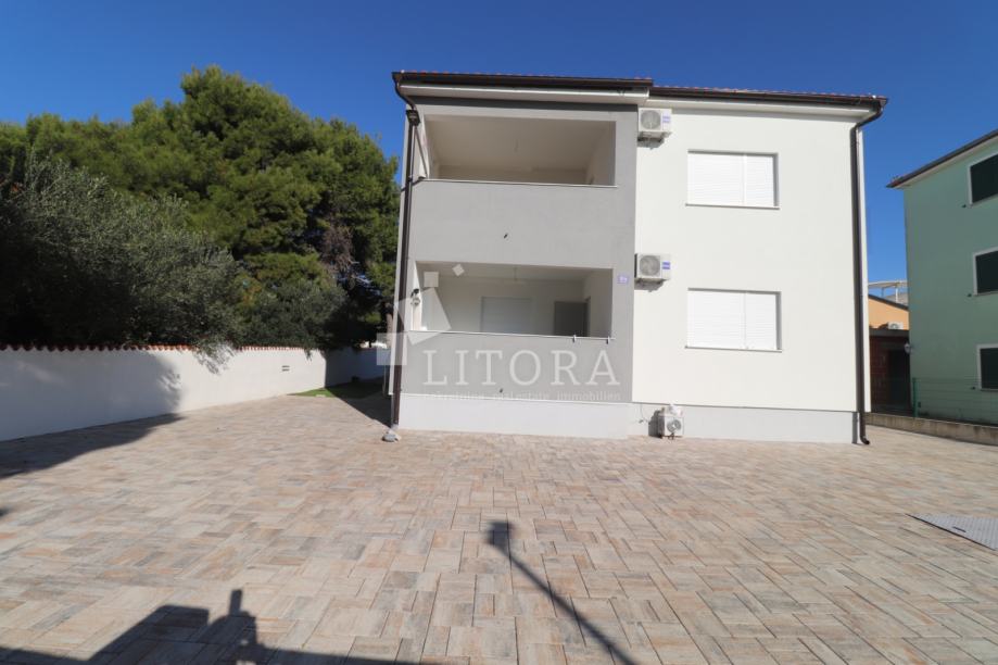 Na mirnoj lokaciji u Vodicama nalazi se novoizgrađena obiteljska kuća s 217m² korisne površine, sagrađena na parceli od 512 m². Kuća se sastoji od dvije zasebne stambene jedinice, svaka sa svojim zasebnim ulazom. U prizemlju je smješten komforan trosobni stan koji se sastoji od hodnika, tri spavaće sobe, dvije kupaonice, velike kuhinje te prostranog dnevnog boravka s izlazom na terasu. Na 1. katu nalazi se također komforan trosobni stan koji se sastoji od hodnika, tri spavaće sobe, dvije kupaonice, velike kuhinje te prostranog dnevnog boravka s izlazom na terasu. Kuća ima malu suterensku ostavu. Okućnica je u potpunosti ograđena, a parkirni prostor je popločan. Kuća je opremljena klima uređajima. Stan u prizemlju je namještena i odmah useljiva; Nekretnina je udaljena 850 m od uređene plaže te 1.050 m od centra grada.