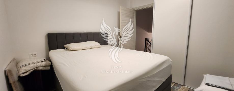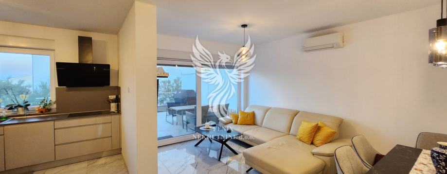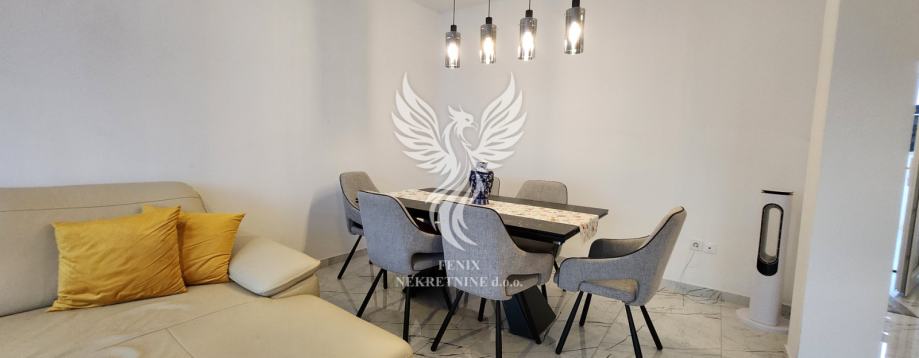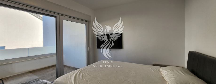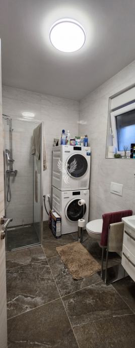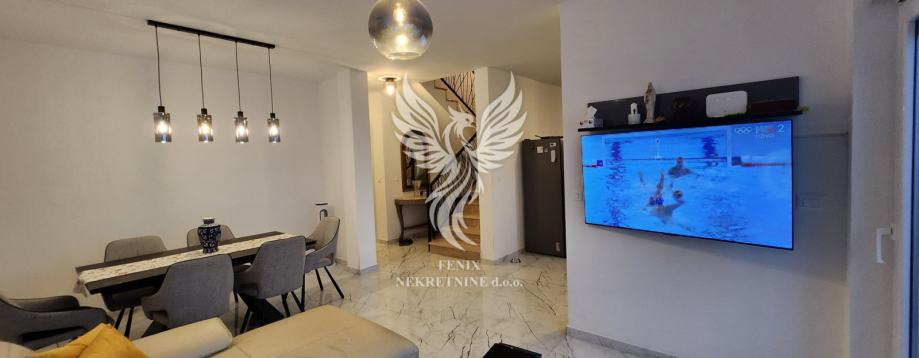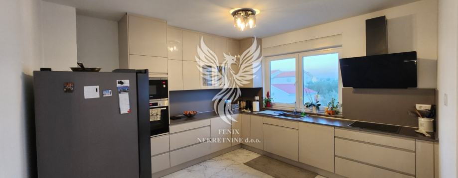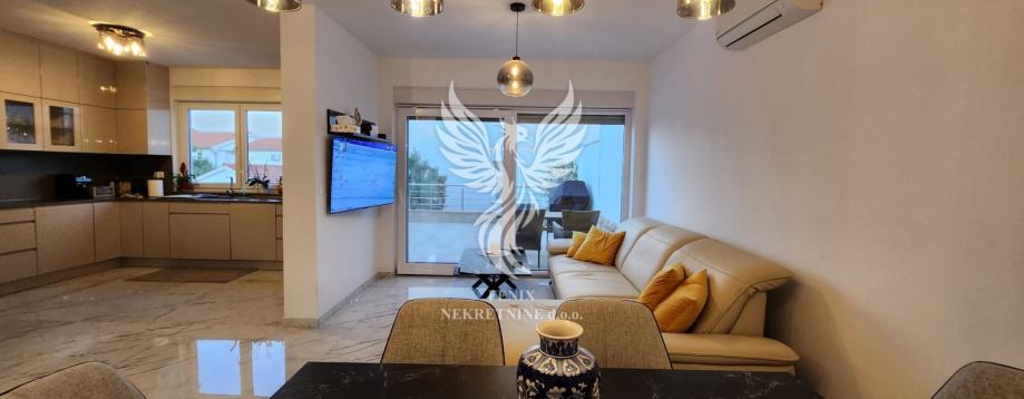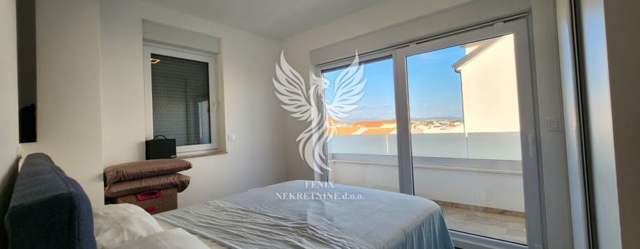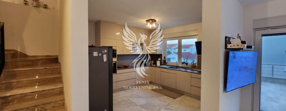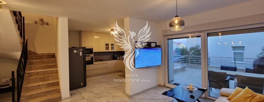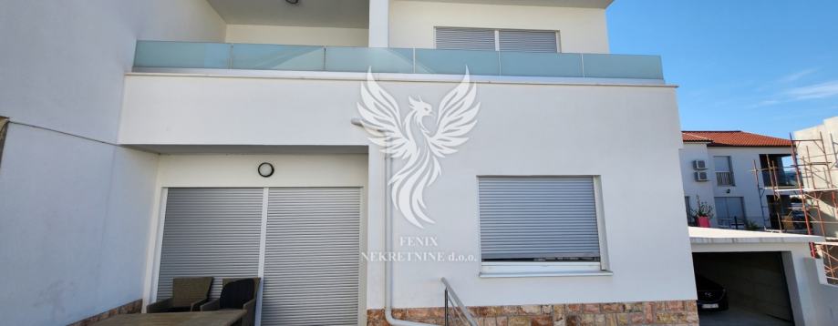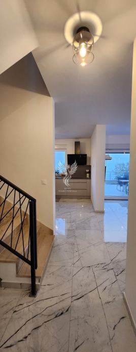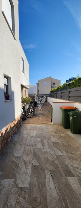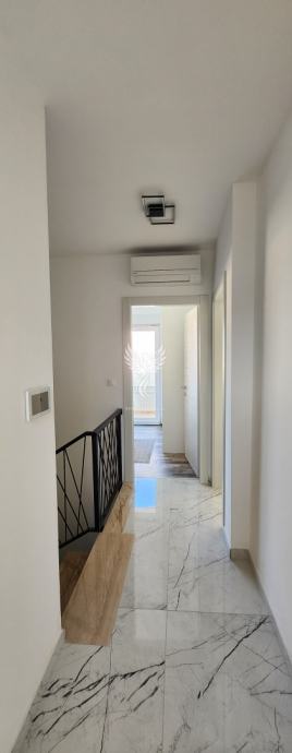 Eine ausgezeichnete zweistöckige Wohnung zum Verkauf in einem neuen Gebäude in Vodice, in einer ruhigen Straße, 1 km vom Stadtzentrum entfernt. Die Wohnung ist als zweistöckiges Gebäude mit Erdgeschoss und Obergeschoss sowie angeschlossener Garage und Hof konzipiert. Im Erdgeschoss des Gebäudes gibt es einen Flur, eine Küche mit Esszimmer und Wohnzimmer, Badezimmer, Speisekammer, Abstellraum und eine teilweise überdachte Terrasse, im ersten Stock des Gebäudes gibt es einen Flur, drei Schlafzimmer, ein Badezimmer und zwei Terrassen. Das Gebäude verfügt über einen großen Hofbereich, in dem es zwei Außenparkplätze gibt und in der Garage ein Parkplatz für ein weiteres Fahrzeug vorgesehen ist. Die Wohnung wird mit Möbeln verkauft, die größtenteils maßgefertigt sind. Das Heiz- und Kühlsystem besteht aus Inverter-Klimaanlagen. Eigentum in Ordnung.