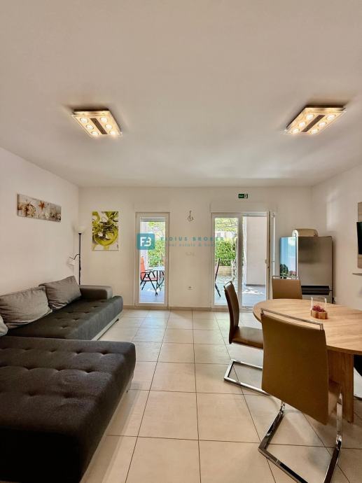 Nekretnina se nalazi na atraktivnoj lokaciji, u mirnom kvartu i okružena je obiteljskim kućama. Blizu je svih potrebnih sadržaja, udaljena samo 430 m od plaže i 1100 m od centra grada.
