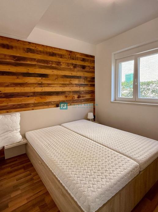 Samostojeća apartmanska kuća ukupne građevinske bruto površine 437,90 m2 smještena je na zemljištu površine 476 m2. Ima ukupno tri etaže: prizemlje + 1. kat + visoko potkrovlje. Kuća sadrži 5 kompletno opremljenih, namještenih i moderno uređenih apartmana, idealnih za nastavak iznajmljivanja. Svaki apartman ima vlastiti, odvojeni ulaz, čime se osigurava privatnost. U prizemlju se nalazi i pomoćni objekt.