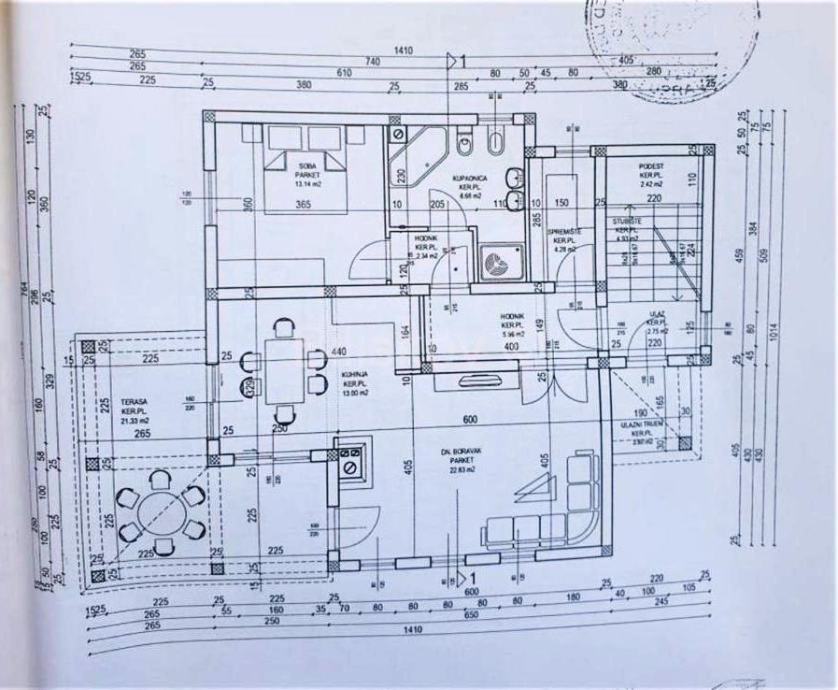 - prilaz i dio dvorišta opločen (cca. 150 m2);