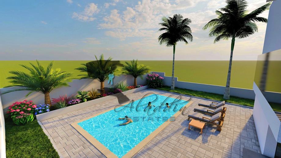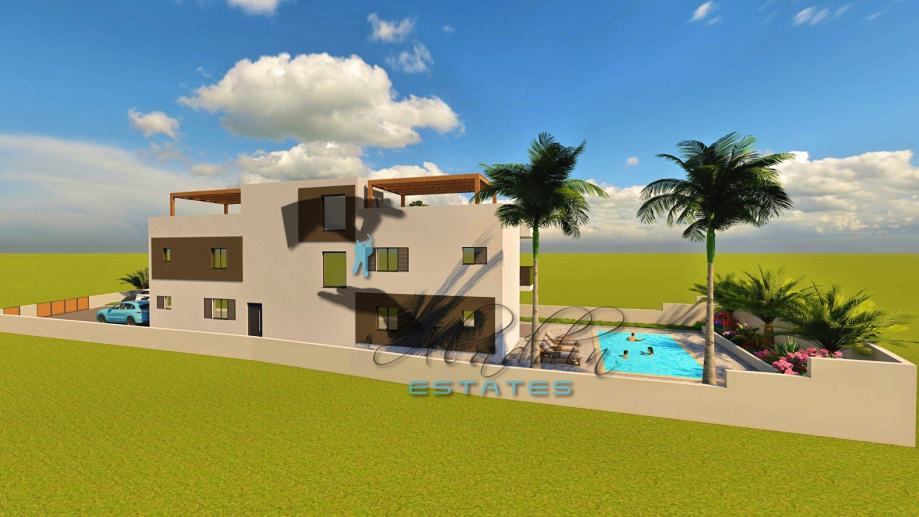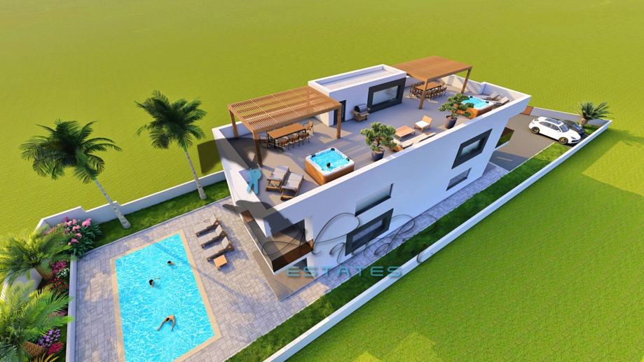 A modern two-storey residential building under construction in Vodice, with a total of 4 exceedingly comfortable apartments. Available is apartments S3 and S4 on the first floor which consist of a living room, kitchen and dining room as one unit, two spacious bedrooms, two bathrooms, pantry and hallway. Apartments also offer a luxurious covered terrace and as many as two parking spaces. They also extend spectacular roof terraces with electrical installations, hot and cold water and drainage, as well as ambient lighting to create a special atmosphere. The owner will be able to install a jacuzzi, summer kitchen, barbecue and pergola as desired.