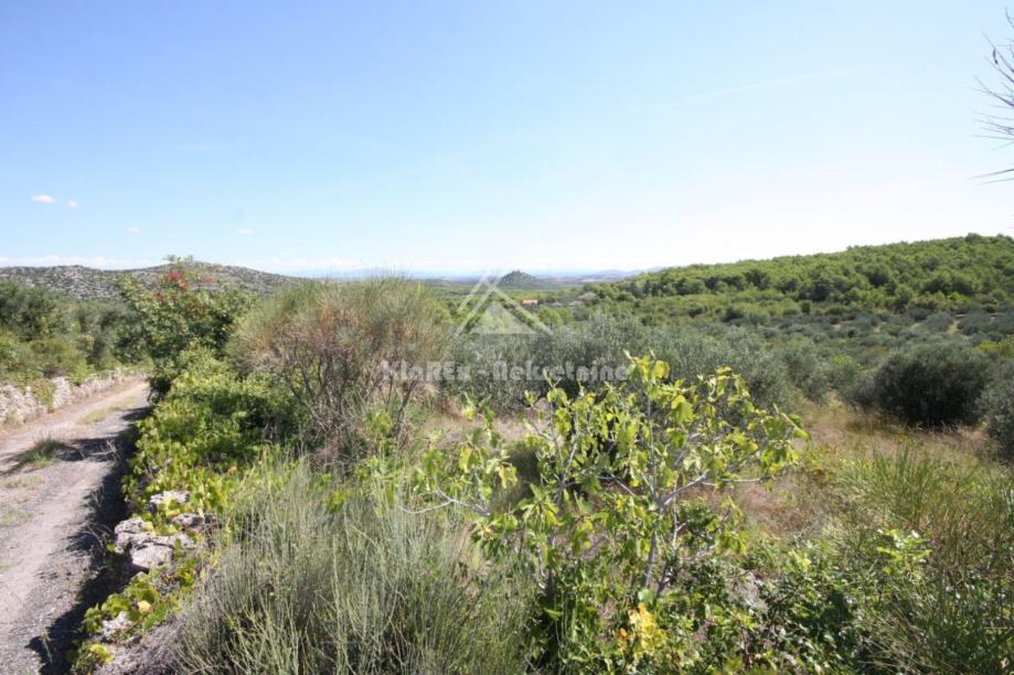 U zaleđu Vodica, na udaljenosti od oko 7500 metara od centra grada, odnosno od obale mora se prodaje poljoprivredno zemljište površine 11600 m/2. Zemljište je u naravi održavani maslinik, a s obzirom na površinu moguća je gradnja i manjeg stambenog objekta (alatnice) do 30 m/2 tlocrtne površine. Zemljište ima pristup urednim makadamskim putem dovoljne širine, a posjeduje i kolni ulaz. Sa zemljišta se pruža lijep pogled na grad Vodice i crkvu na brdu Okit. Vlasništvo uredno.