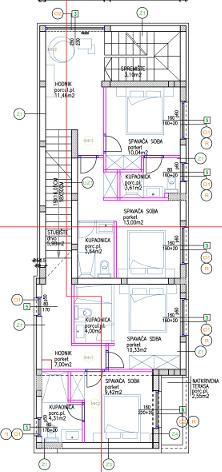 Na drugoj etaži: hodnik, kupaonica s WC-om, prva master spavaća soba s vlastitom kupaonicom s WC-om i druga spavaća soba kao i natkriveni balkon.