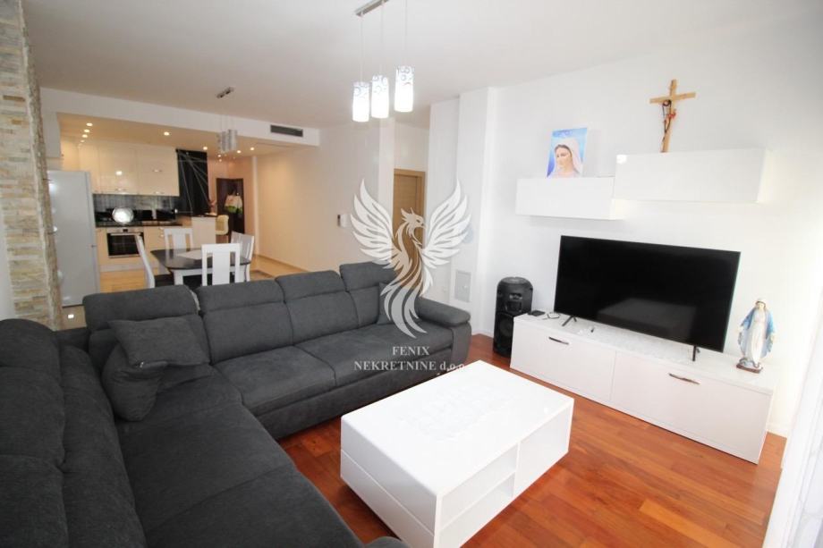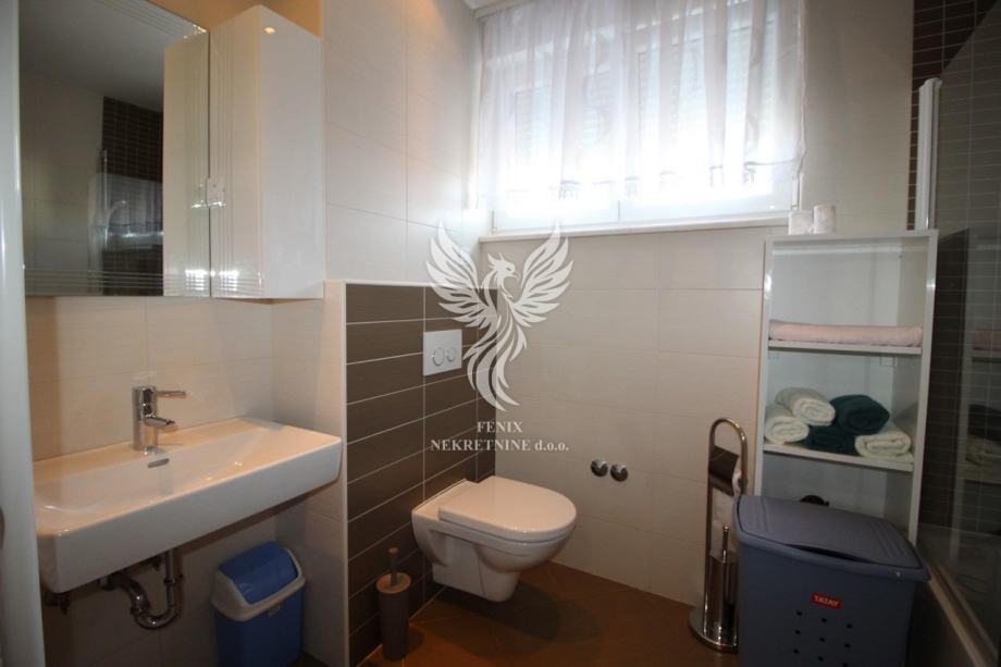 Eine ausgezeichnete Wohnung zum Verkauf in Vodice, 300 Meter von der Stadt und 800 Meter vom ersten organisierten Strand entfernt. Die Wohnung befindet sich in einem 2015 erbauten Wohnhaus und wurde von den Eigentümern nur minimal, nur wenige Monate im Jahr, genutzt. Die Wohnung besteht aus einer Eingangshalle, einer Küche mit Esszimmer und Wohnzimmer, zwei Schlafzimmern, einem Badezimmer, einer Toilette und einer geräumigen Terrasse. Die Wohnung verfügt über einen Keller von 30 m2 und einen Außenparkplatz. Die Wohnung wird möbliert verkauft, die Küche und Türen sind maßgefertigt, hochwertige Keramik ist eingebaut, im Wohnzimmer gibt es einen Kamin und in allen Räumen gibt es Klimaanlagen. Das Eigentum ist 1/1 und es gibt keine Belastungen.