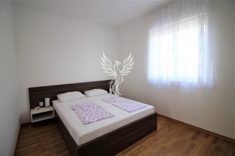 Prodaje se odličan stan u Vodicama, na 300 metara udaljen od grada i 800 metara od prve uređene plaže. Stan se nalazi u stambenoj zgradi izgrađenoj 2015. godine i vlasnici su ga minimalno koristili, svega nekoliko mjeseci u godini. Stan se sastoji od ulaznog prostora - hodnika, kuhinje s blagovaonicom i dnevnim boravkom, dviju soba, kupaonice, wc-a, te prostrane terase. Stanu pripada podrum od 30 m2 i vanjsko parkirno mjesto. Stan se prodaje namješten, kuhinja i vrata su rađeni po mjeri, postavljena je keramika visoke kvalitete, u dnevnom boravku je postavljen i kamin, a u svim prostorijama se nalaze klime. Vlasništvo je 1/1 i bez tereta.